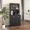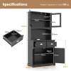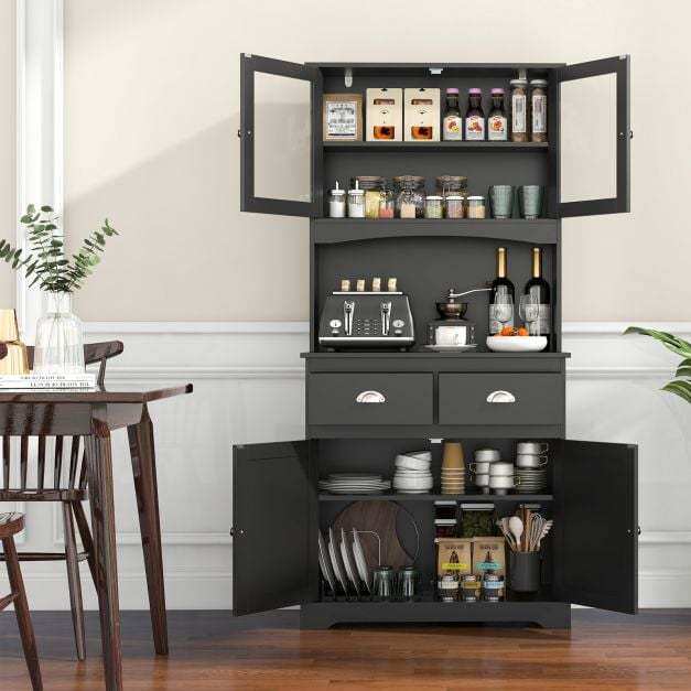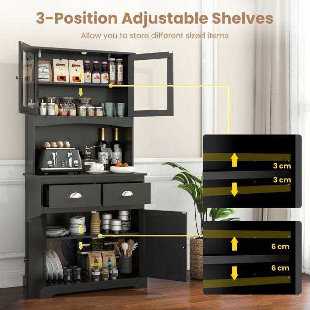 Boasting a combination of style and functionality, this sideboard offers ample storage space with an upper cabinet, 2 drawers and a 2-door cabinet at the bottom. The 3-position adjustable shelves allow you to adapt the space to accommodate items of different sizes. Made with quality boards, it is built to last with a wide base and anti-tip safety features. Embrace its modern and practical design, suitable for various environments, such as the kitchen, living room or dining room.