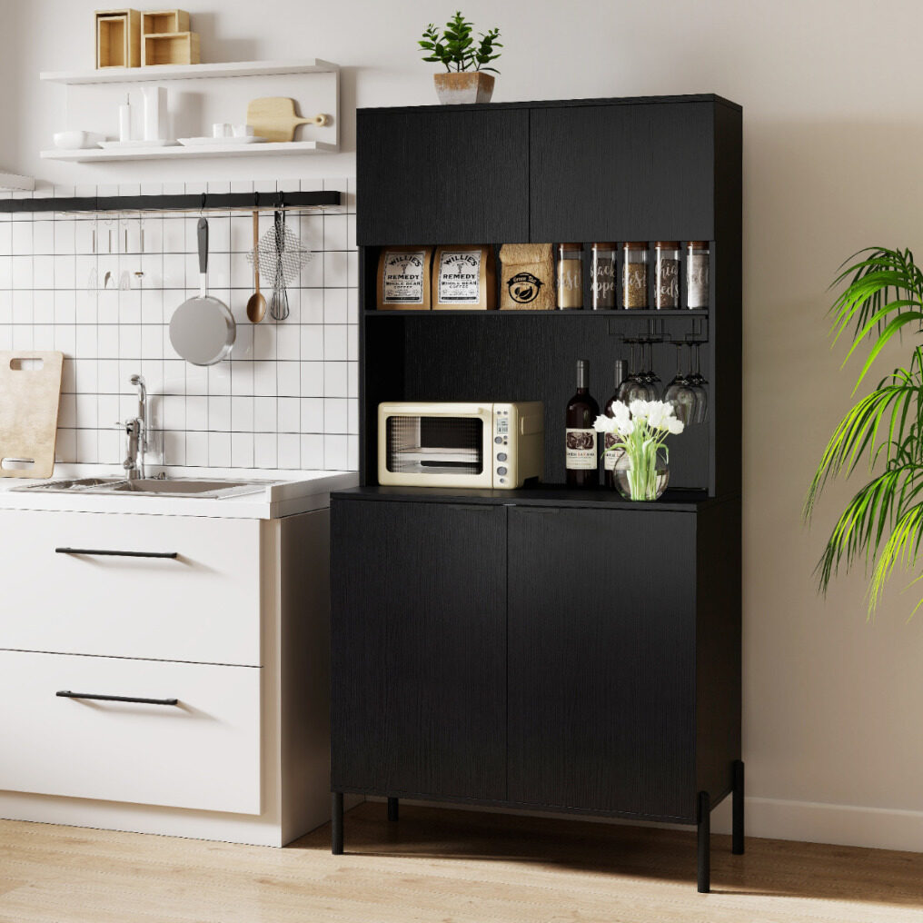 Perfect Storage Solution: The pantry cabinet provides ample storage space for kitchenware and dinnerware with its dual cabinets. The wide countertop and open shelf serve as a perfect staging area for appliances, dishes, spice jars and cans.
