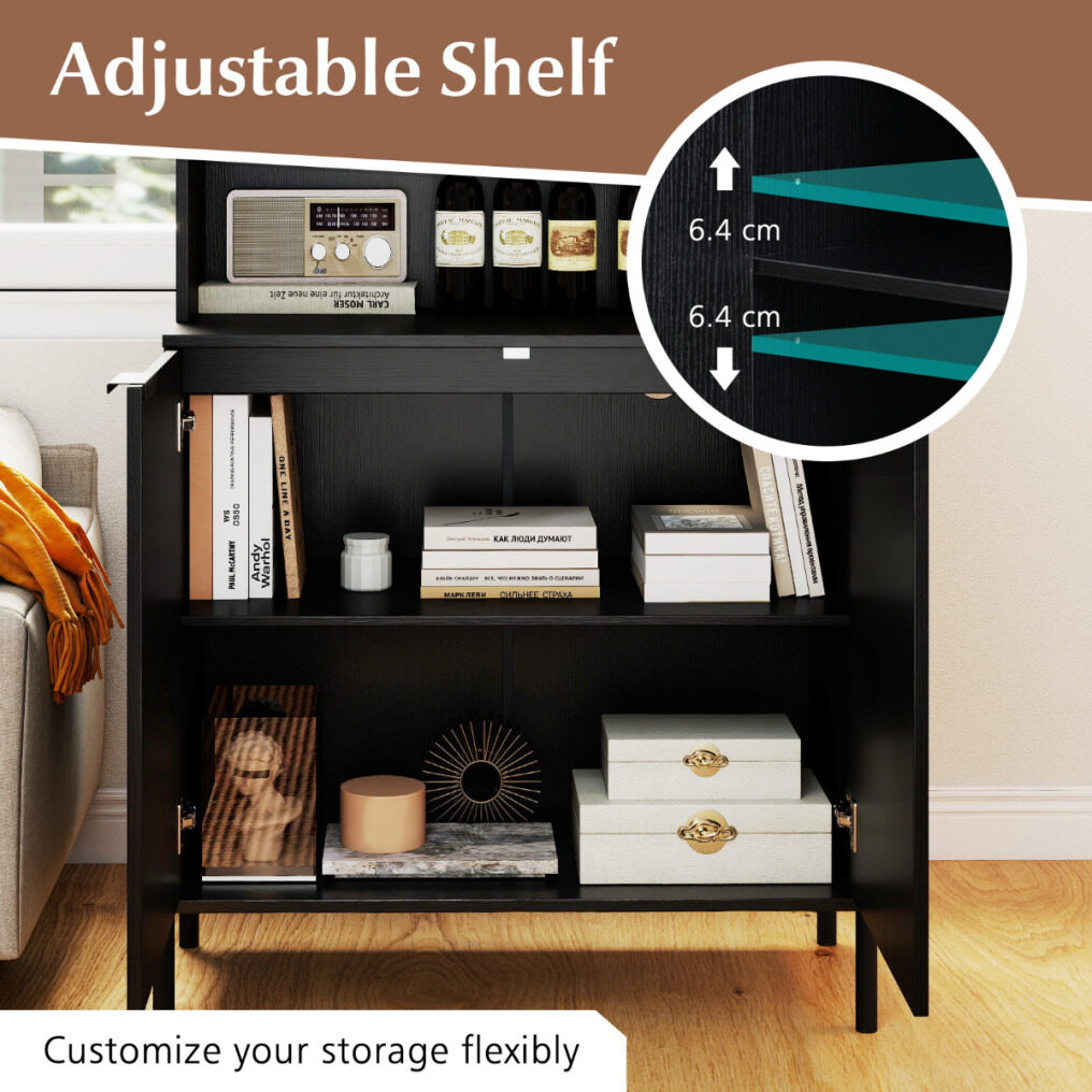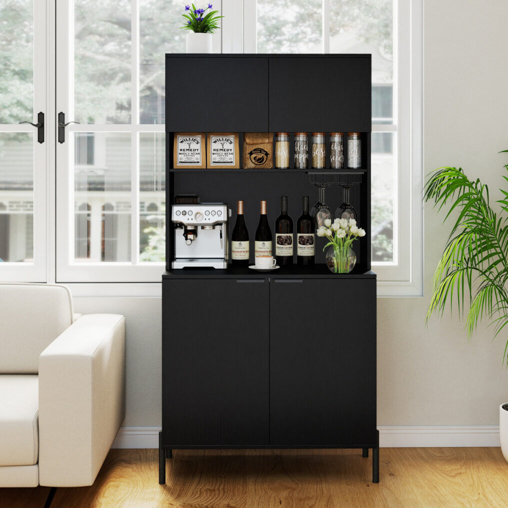 Chic Style and Versatile Usage: This versatile piece can be used as a wine cabinet, buffet cabinet, cupboard, or coffee bar station. Its clean lines and elegant look enhance the visual appeal of any kitchen, dining room, or living room.