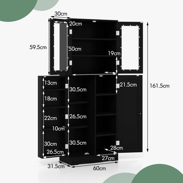 MORE DETAILS AND MEASUREMENTS: The easy-to-grasp knobs and magnetic snaps allow you to easily and effortlessly open or close the doors to get what you need. In addition, the smooth surface is super easy to clean. The finished dimensions are 60 cm x 31.5 cm x 161.5 cm (L x W x H). Each shelf supports a weight of up to 20 kg.