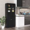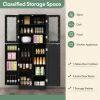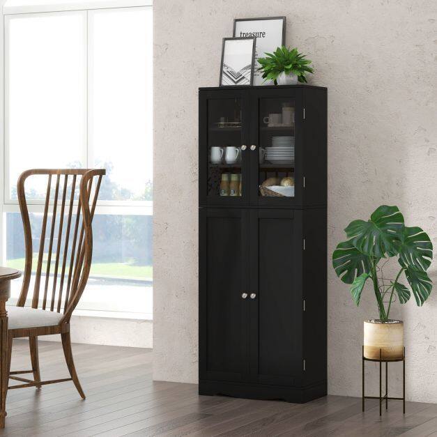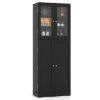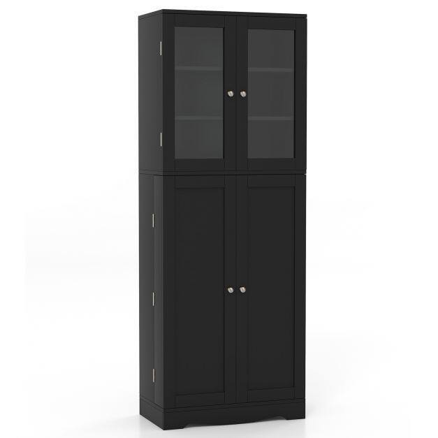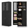 PERFECT STORAGE SOLUTION: This kitchen cabinet gives you plenty of storage space. It has 1 glass door cabinet with 3 fixed shelves and 1 normal door cabinet with 7 storage compartments. Also, there are 4 extra door shelves behind the side door for you to store spices or food.