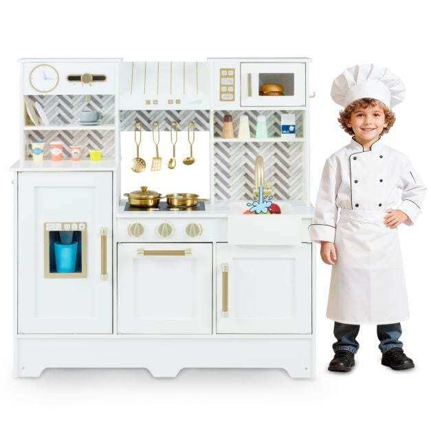 Added Safety & Stability: Designed with solid-wood legs, rounded corners, and an included anti-tip kit, this play kitchen set stays rock-steady even when energetic chefs lean in to stir. Parents relax knowing the kid's interactive play kitchen complies EN71/CPSIA for safe, wobble-free culinary adventures.