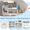 Smart Storage Options: After the feast is over, the toy kitchen hides every accessory behind 4 cabinet doors while a dish rack, spice shelf, and 5 hooks keep pots, pans, and play food neatly displayed. Cleanup becomes part of the game, teaching toddlers organization skills and ensuring the pretend coffee station is always ready for the next rush of imaginary customers.