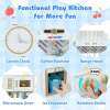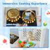 2-Height Counters: The 60 cm coffee bar and 46.5 cm cooktop on this kid's interactive play kitchen grow with your child, so 3-year-olds can reach the lower burners while 6-year-olds master the upper café. Siblings or play-date friends of different heights can cook side-by-side without tiptoes or stooping, making the pretend play toy a social hit.