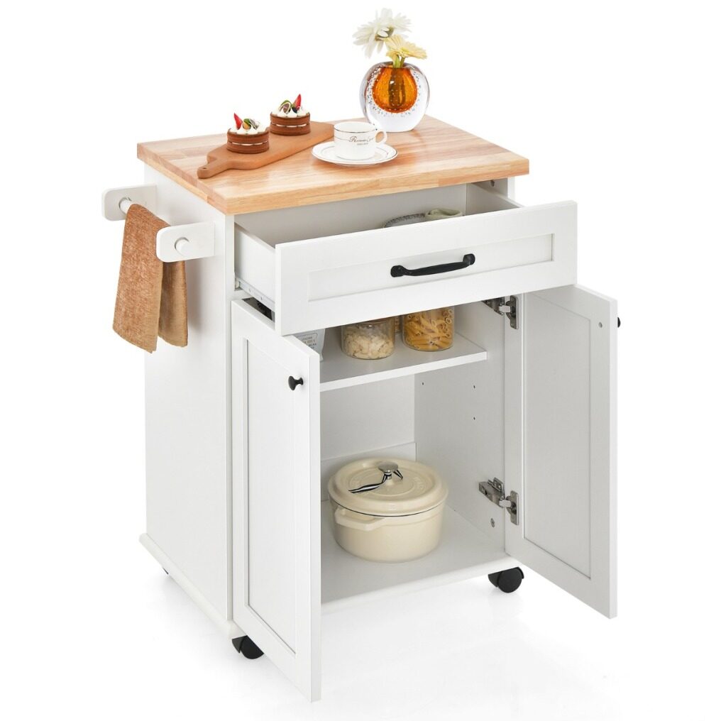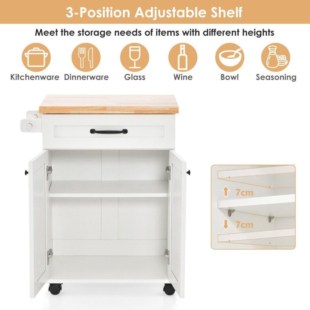 Ample Storage Capacity: Whether it's bulky pots and pans, small appliances, or cooking utensils, our cart offers ample storage capacity to keep all your essentials organized and easily accessible. With a large drawer for storing cutlery and a convenient towel rack to keep your kitchen towels within reach.