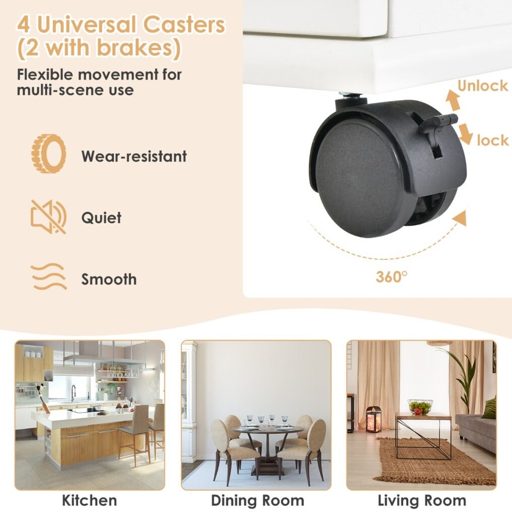 Smooth and Flexible Mobility: Our kitchen rolling cart is equipped with 4 universal casters (2 of which are lockable), offering smooth movement and easy maneuverability. Effortlessly roll it around your kitchen or dining area, and secure it in place with the brakes when needed.