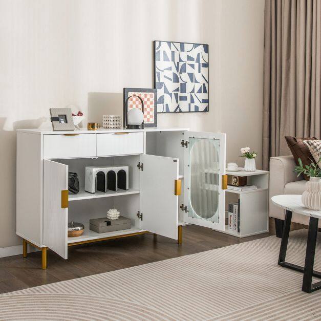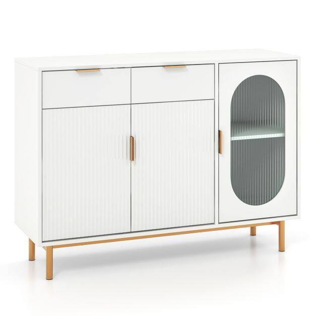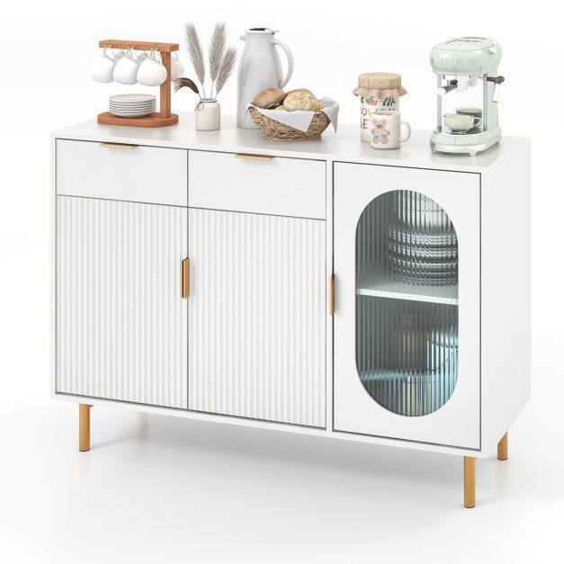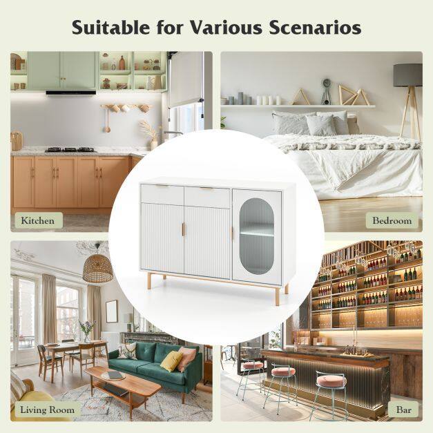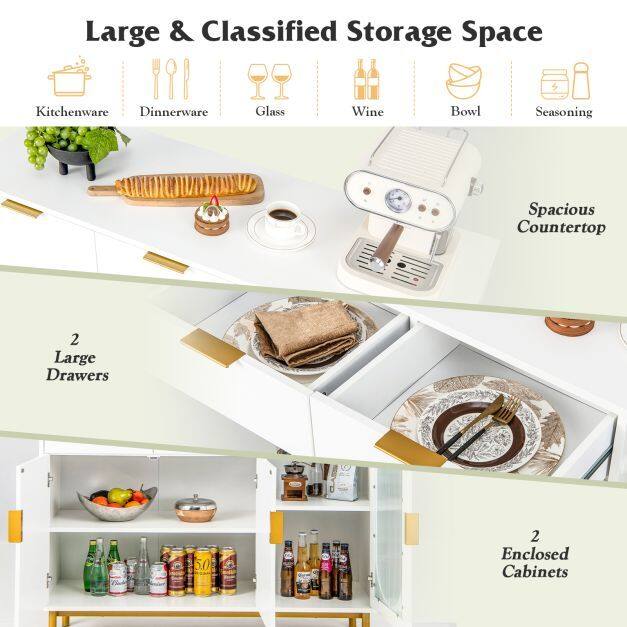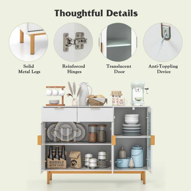 Durable and Safe Use: Crafted with high-quality MDF board and a painted surface, this buffet server sideboard guarantees durability and stability for long-term use. The cabinet is designed with an anti-toppling device that securely attaches it to the wall, ensuring it stays in place and eliminating the risk of tipping over or wobbling.