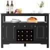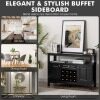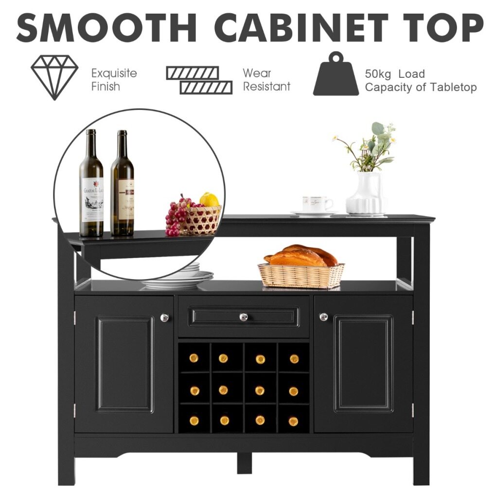 Plenty of Storage Space: This wine bar buffet sideboard is designed to meet your maximum storage needs. With a spacious tabletop, 1 open shelf, 1 drawer, 12-bottle wine rack, and 2 side cabinets with doors, it provides you with plenty of space for storing your drinks, utensils, or personal items.