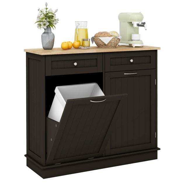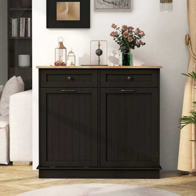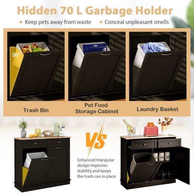● Multifunctional Design: In addition to a kitchen trash bin cabinet, it can used as a laundry basket in the laundry room, a recycle bin, a pet food storage cabinet or a coffee bar in the living room. Its elegant design blends seamlessly with any home style.
