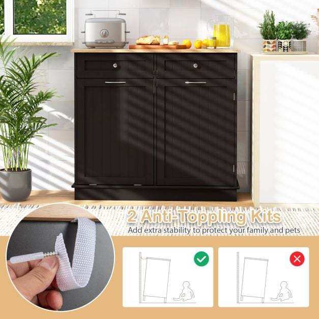 ● Sturdy and Stable Structure: The trash can cabinet is constructed with thickened board for durability. For higher safety and stability, the recycling trash cabinet is equipped with anti-toppling device to prevent accidents.