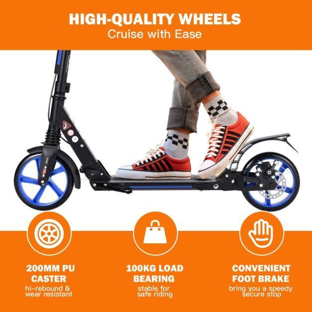 Made of high-quality aluminum alloy: Our foldable scooter is made of durable aluminum alloy of good quality. In addition, the load capacity is 100kg. Therefore, this scooter is available to most children from 8 years of age.