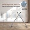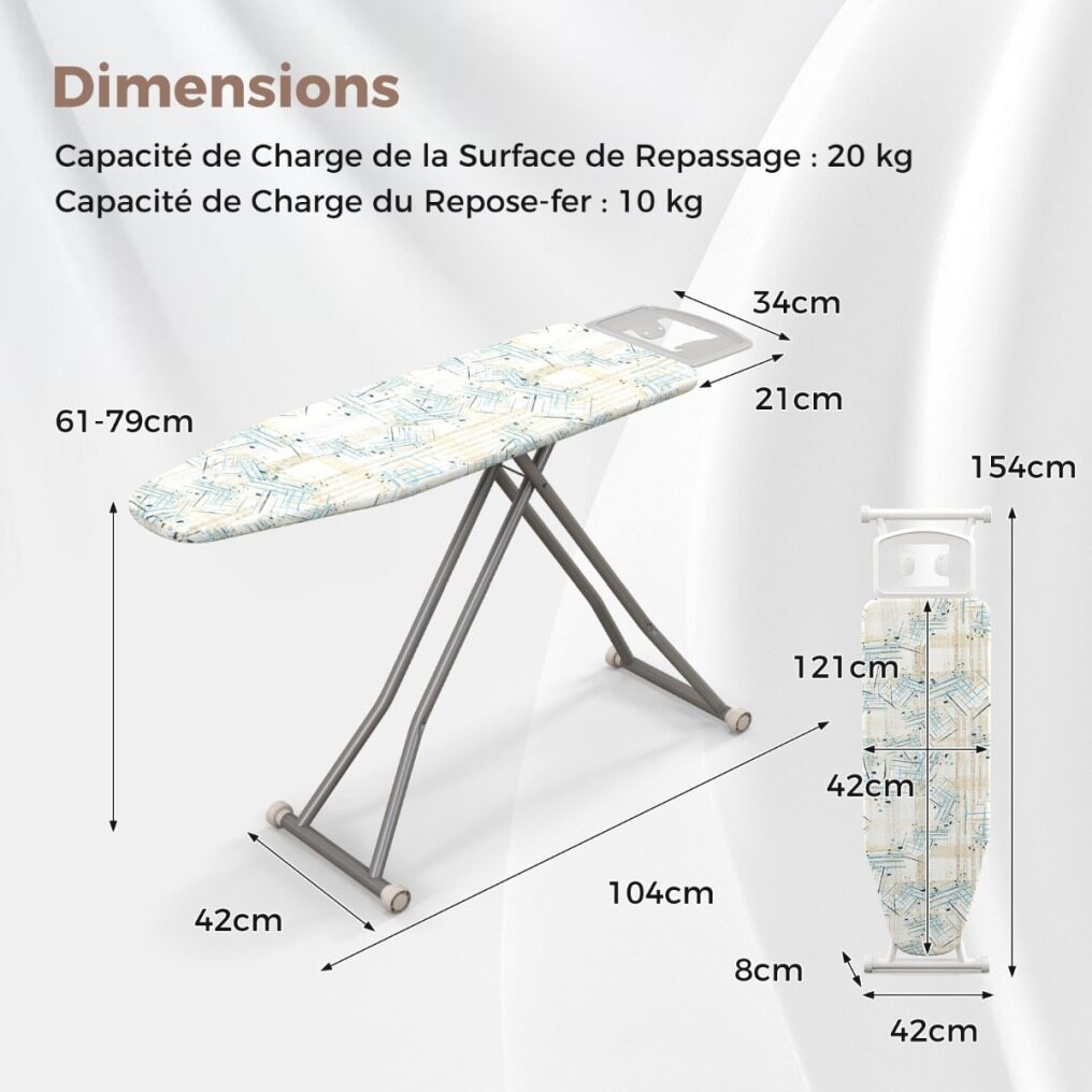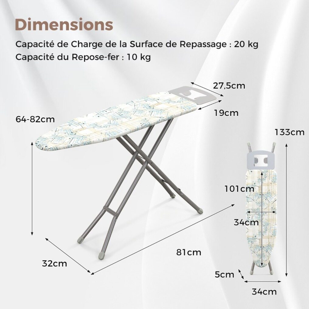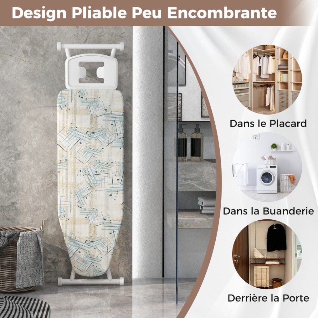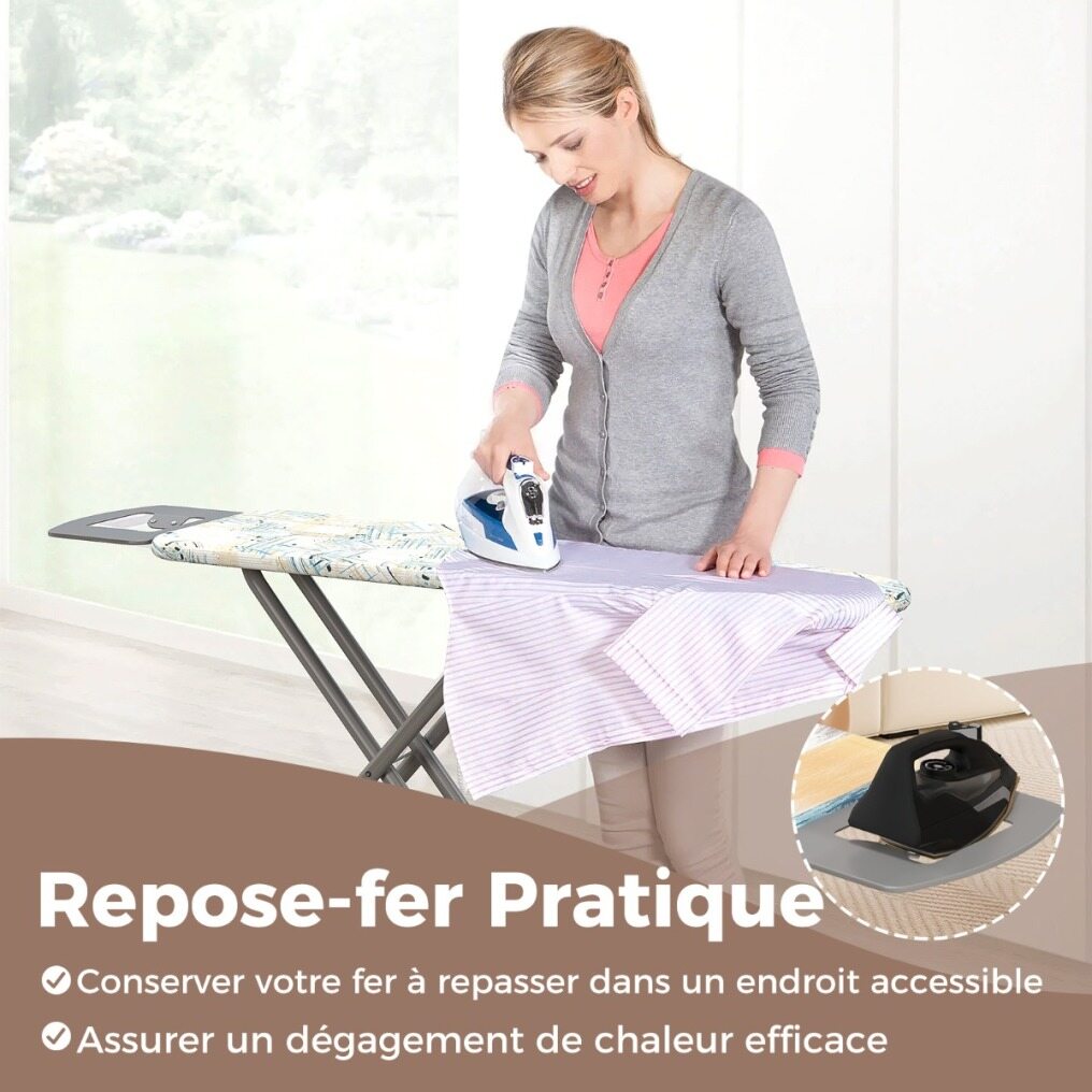 7 Height Adjustments: The ironing board is equipped with 7 height levels to adjust your ironing comfort and reduce back pain. In addition, the safety lock ensures that the board remains stable and provides a safe ironing base.