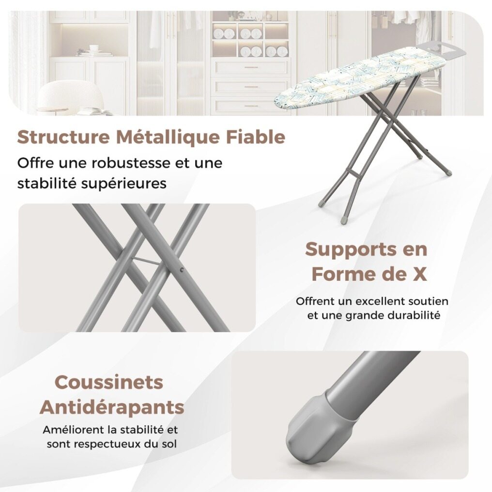 Heat-resistant silver coating: The ironing board is coated with a silver coating that can withstand temperatures up to 280°C to ensure perfect burn prevention. In addition, the silver coating can reflect heat and improve ironing efficiency.