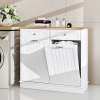 Farmhouse style: Flamed drawer fronts and a crisp white finish allow this bin cabinet to blend seamlessly into kitchens, dining rooms, or laundry rooms without looking like "garbage furniture." Its versatile design makes this tilting bin cabinet the perfect rustic accent for any room.