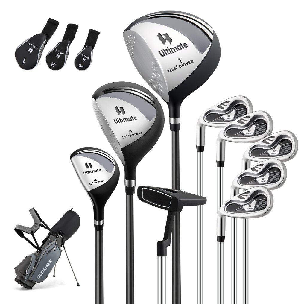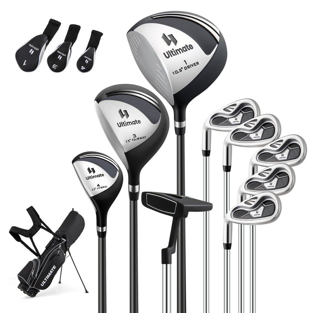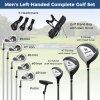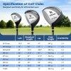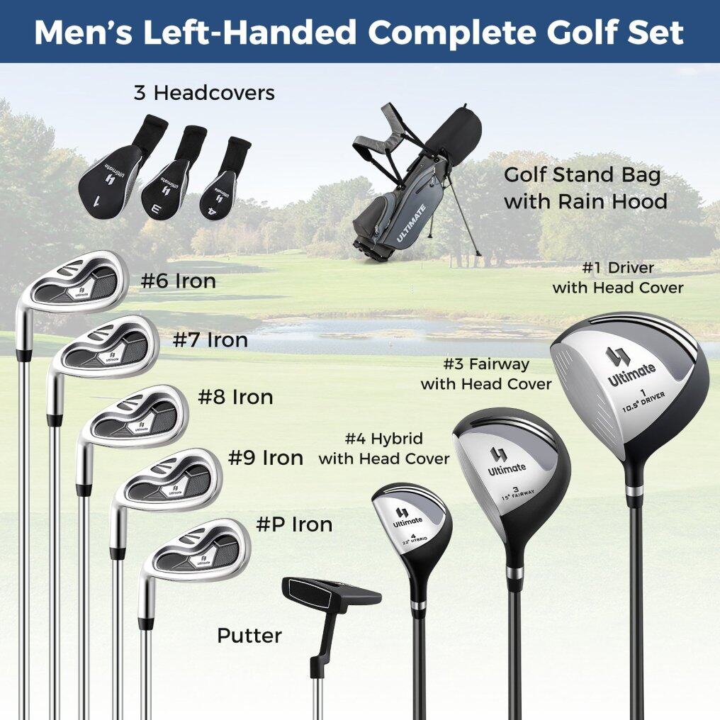 【Complete Left-Handed Men's Golf Set】This complete set includes a #1 driver with cover, a #3 wood with cover, a #4 hybrid with cover, #6, #7, #8, #9 and #P irons, a putter, as well as a stand golf bag with rain hood. This equipment allows you to be perfectly equipped for all phases of the game, from the first tee shot to the last putt.