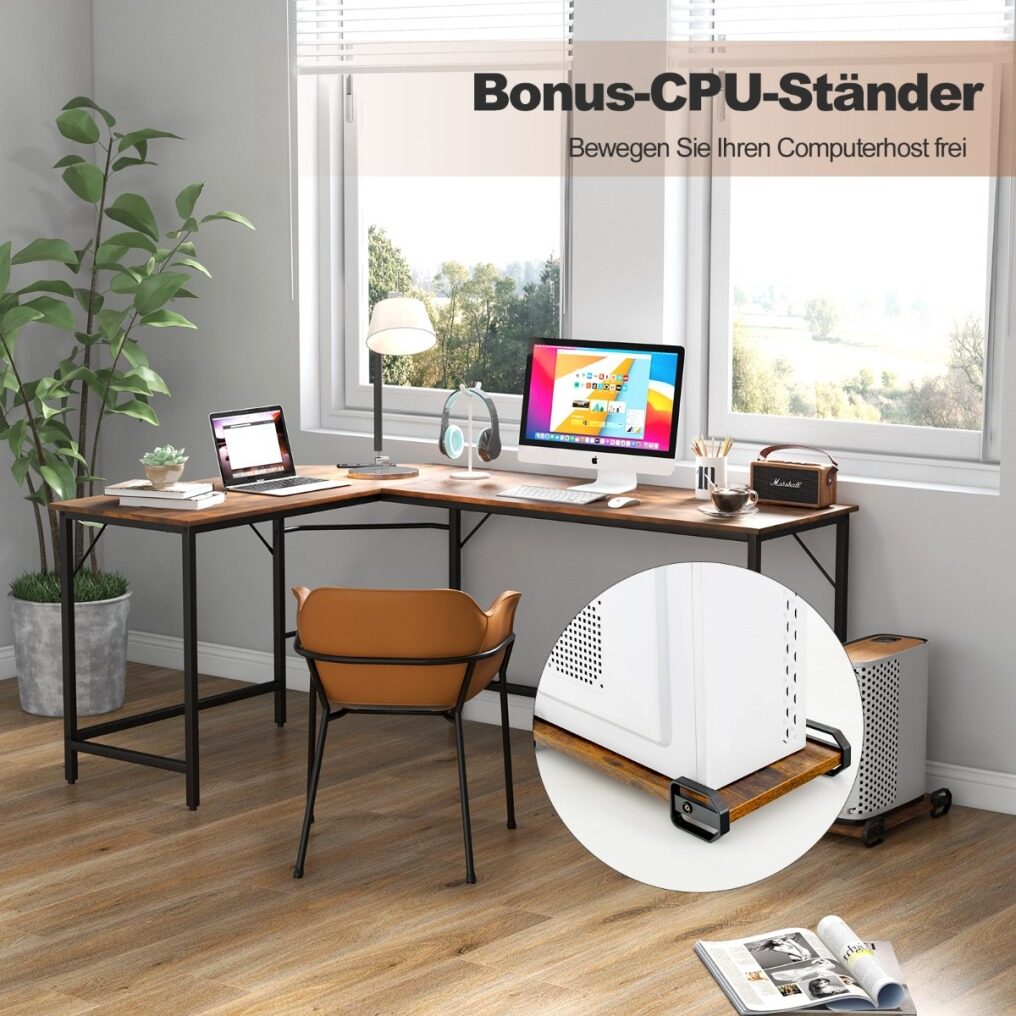 Large L-shaped desk: The L-shaped desk not only provides spacious space for 2-3 monitors, books, plants, cups and lamps, but also provides ample work surface for home office activities. In addition, this L-shaped PC desk is great for the corners of the room to make the most of your limited space.