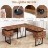 Dive into a world of organized productivity with our L-shaped desk, crafted to fit snugly in any corner to maximize the use of space. In addition, the executive desk also boasts a sleek power strip to keep your devices charged, with 2 AC outlets, a USB and a Type-C ports to support several gadgets at the same time. Three spacious drawers mean no more clutter, while the sturdy metal frame ensures a lifetime of use. Embrace the rustic charm of our warm wood grain finish, turning your office into a haven of style and functionality. Elevate your home office with this must-have desk!