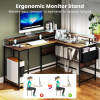 Organized Working Spot: The large L-shaped desktop provides ample space for multiple monitors and gaming accessories. Additionally, the gaming desk includes a CPU stand, fabric bag, metal hook, and under-desk shelf to suit different storage needs.