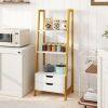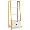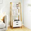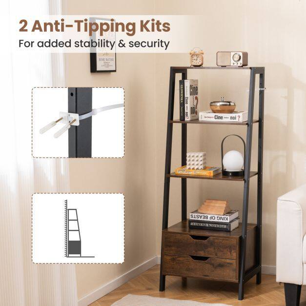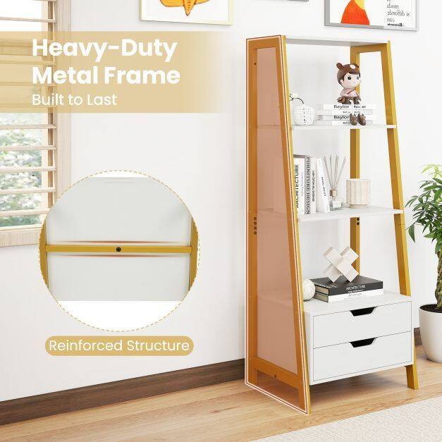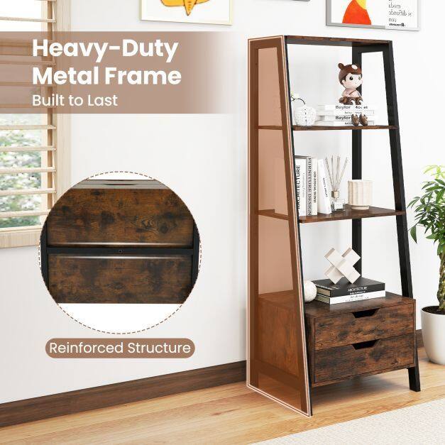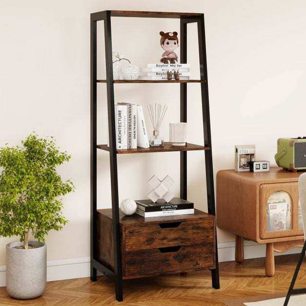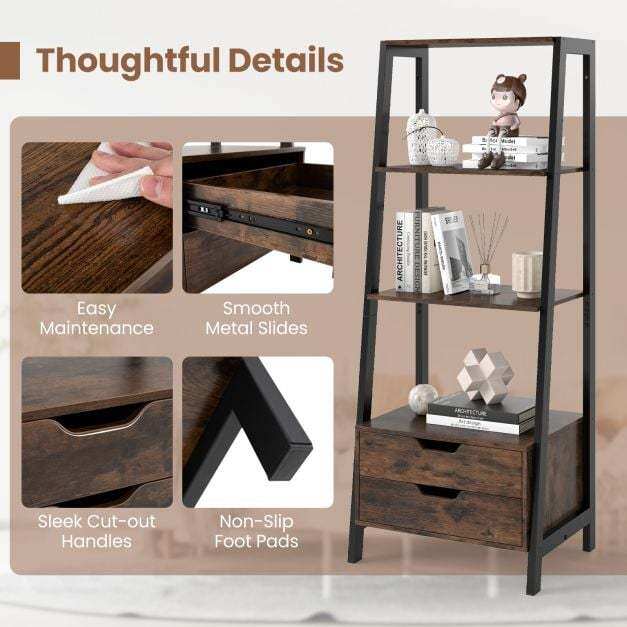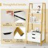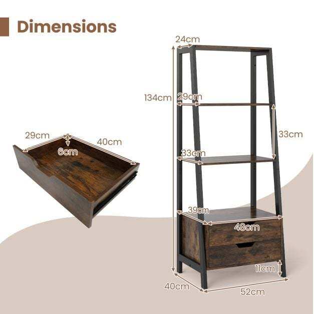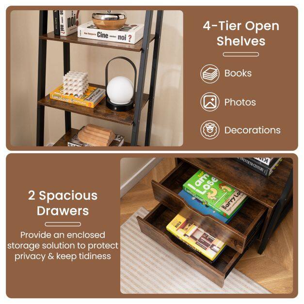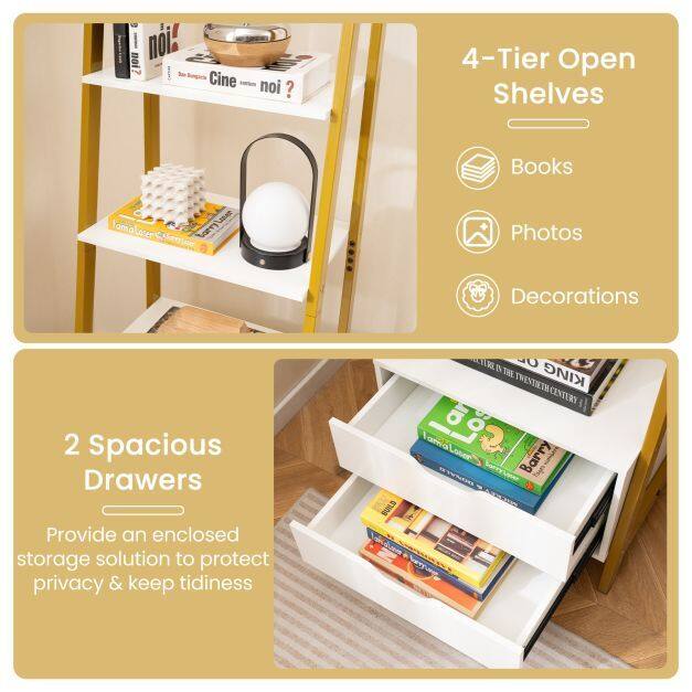 Maximize Your Storage: With 4 spacious open shelves and 2 handy storage drawers, this ladder bookshelf is your perfect solution for organizing books, showcasing photos, and displaying decorative items. Say goodbye to clutter and hello to a well-organized space!