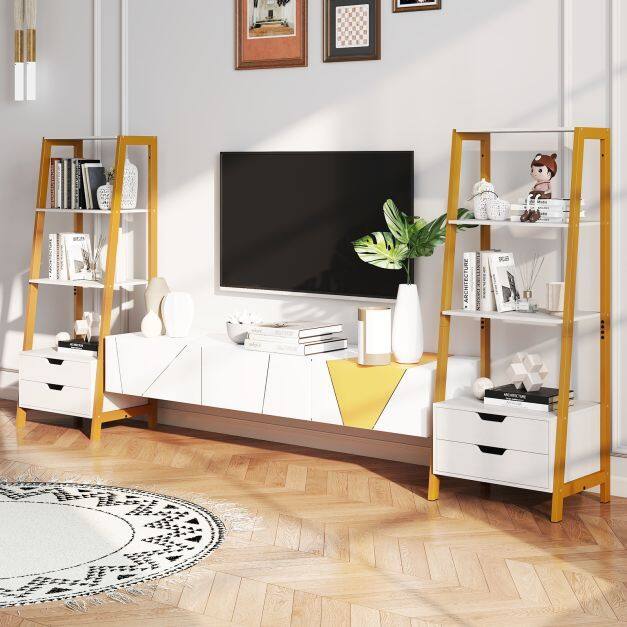With 4 spacious open shelves and 2 deep drawers, you can effortlessly organize everything from books to baubles. This shelving unit isn’t just gorgeously crafted; it's built like a fortress—thanks to its rock-solid metal frame and 2 dependable anti-tipping kits. Plus, its sophisticated style ensures it blends seamlessly into any setting. And the thoughtful details bring a pleasant user experience. So why settle for clutter? Revamp your space and revitalize your daily routine with a storage solution that does it all! Click now to make elegance and efficiency yours!