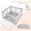 This large playard offers enough space for your little one to explore, and joints are wrapped by foam to prevent the baby from hitting the head. Parents can easily interact with their children through the see-through mesh. The play yard includes 50 ocean balls and 4 pull-up rings for physical activity and motor skills development. This foldable play pen requires no assembly, making it convenient for transport and storage with the included carry bag.