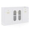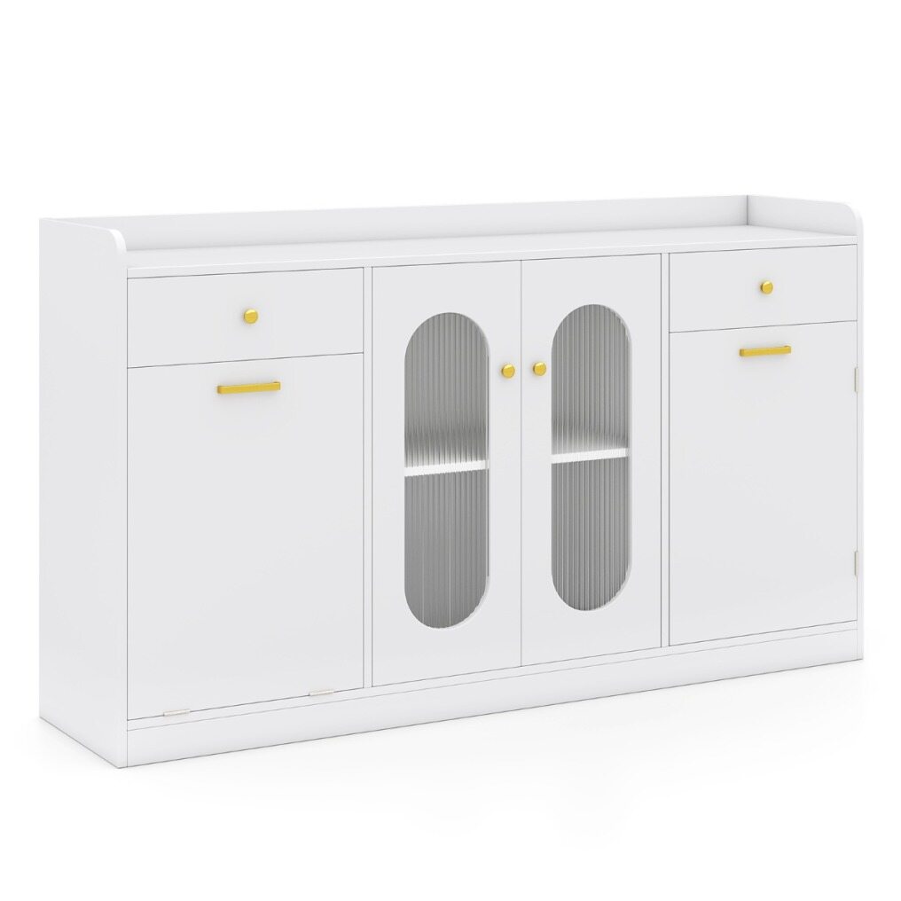 ● Modern Style & Versatile Use: Fluted tempered glass doors add elegance and durability for daily use, complemented by golden handles that elevate the entire silhouette. This modern coffee bar cabinet blends well with your kitchen, dining room, living room, etc.