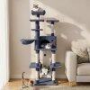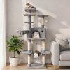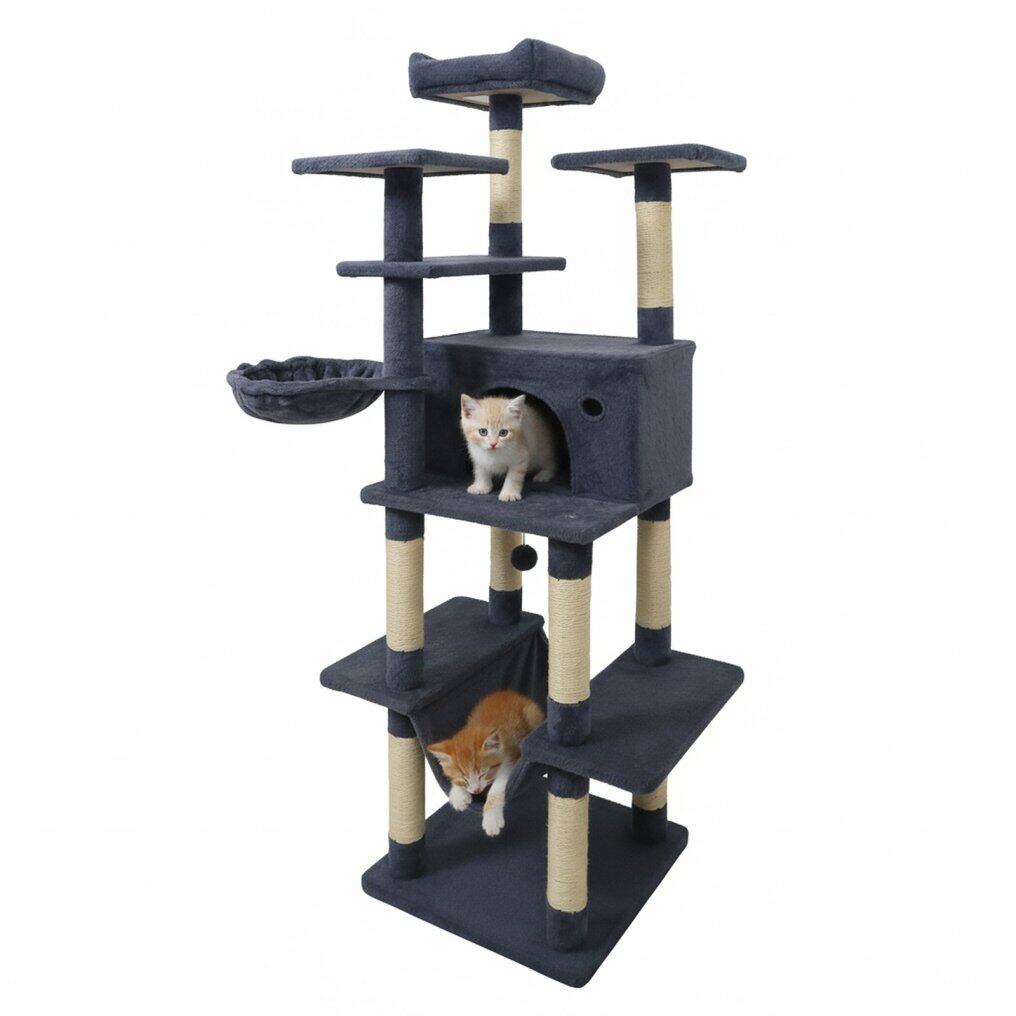 ● Space-efficient & Comfortable Design: The vertical layout of the 63" tall cat playground helps save floor space, making it well-suited for smaller rooms or apartments. The entire unit is covered in soft plush fabric, ensuring a comfortable surface for your cat to enjoy.
