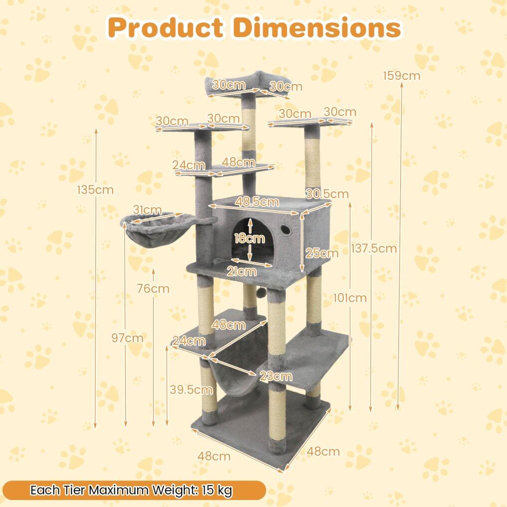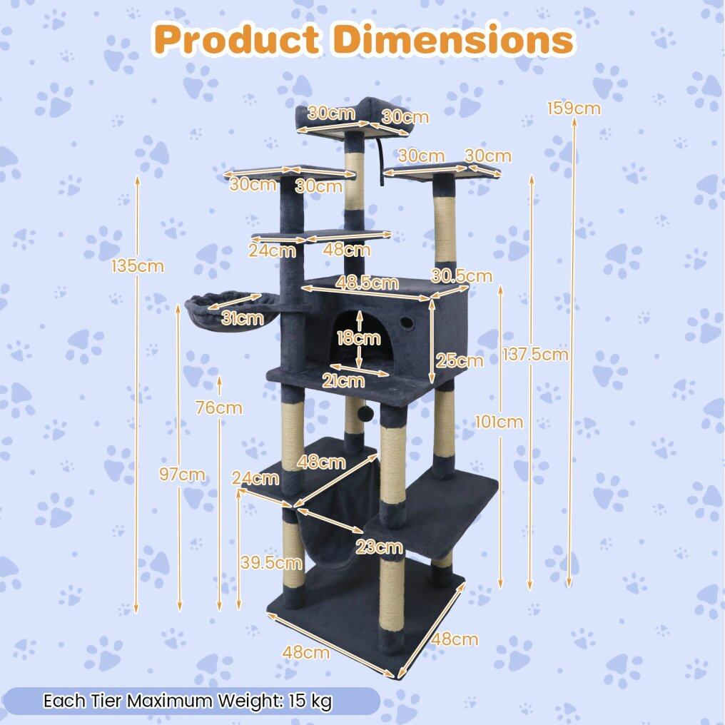 ● Focus on Stability: Designed with a wide weighted base, the cat climbing frame delivers excellent stability and prevents tipping. Furthermore, an anti-tip strap is also provided to secure the tower to the wall, enhancing safety during vigorous play.