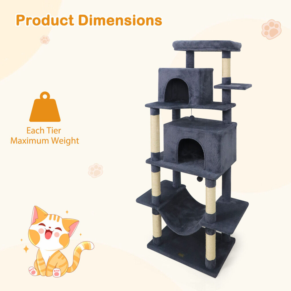 ● Compact & Comfortable Design: The large cat playground's vertical build is space-saving, making it a perfect addition to smaller rooms or apartments. Plus, the entire structure is enveloped in soft plush material, providing a gentle surface for your cat's body.