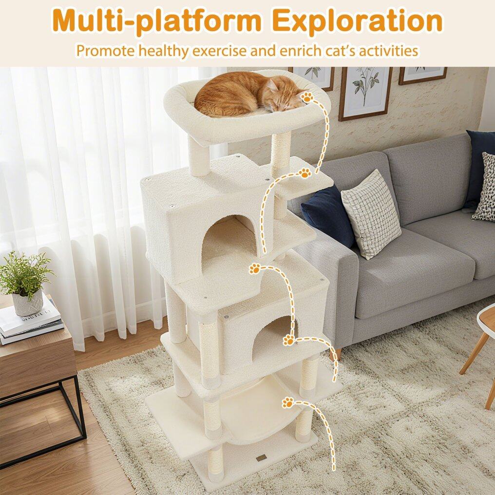 ● Compact & Comfortable Design: The large cat playground's vertical build is space-saving, making it a perfect addition to smaller rooms or apartments. Plus, the entire structure is enveloped in soft plush material, providing a gentle surface for your cat's body.