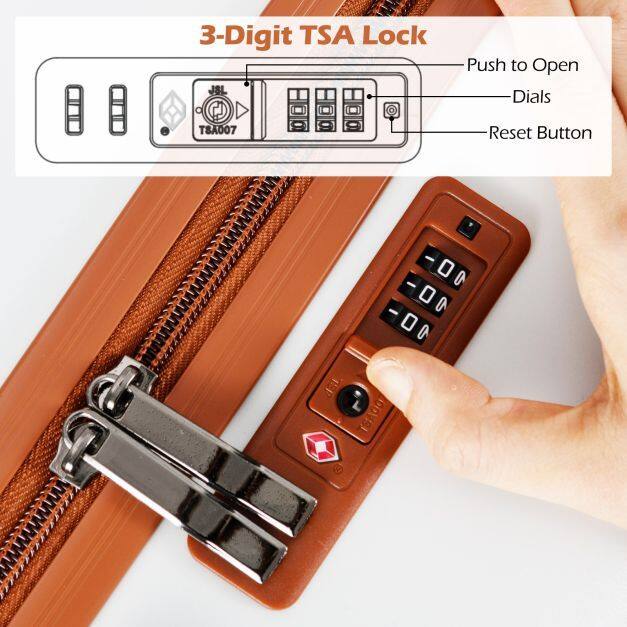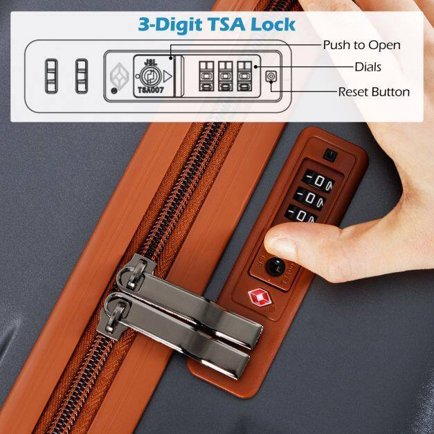 3-Digit TSA Lock: The TSA lock installed on the side is specifically designed to allow TSA agents to securely inspect your luggage during travel, ensuring that your belongings can be checked without causing any damage to the lock itself.