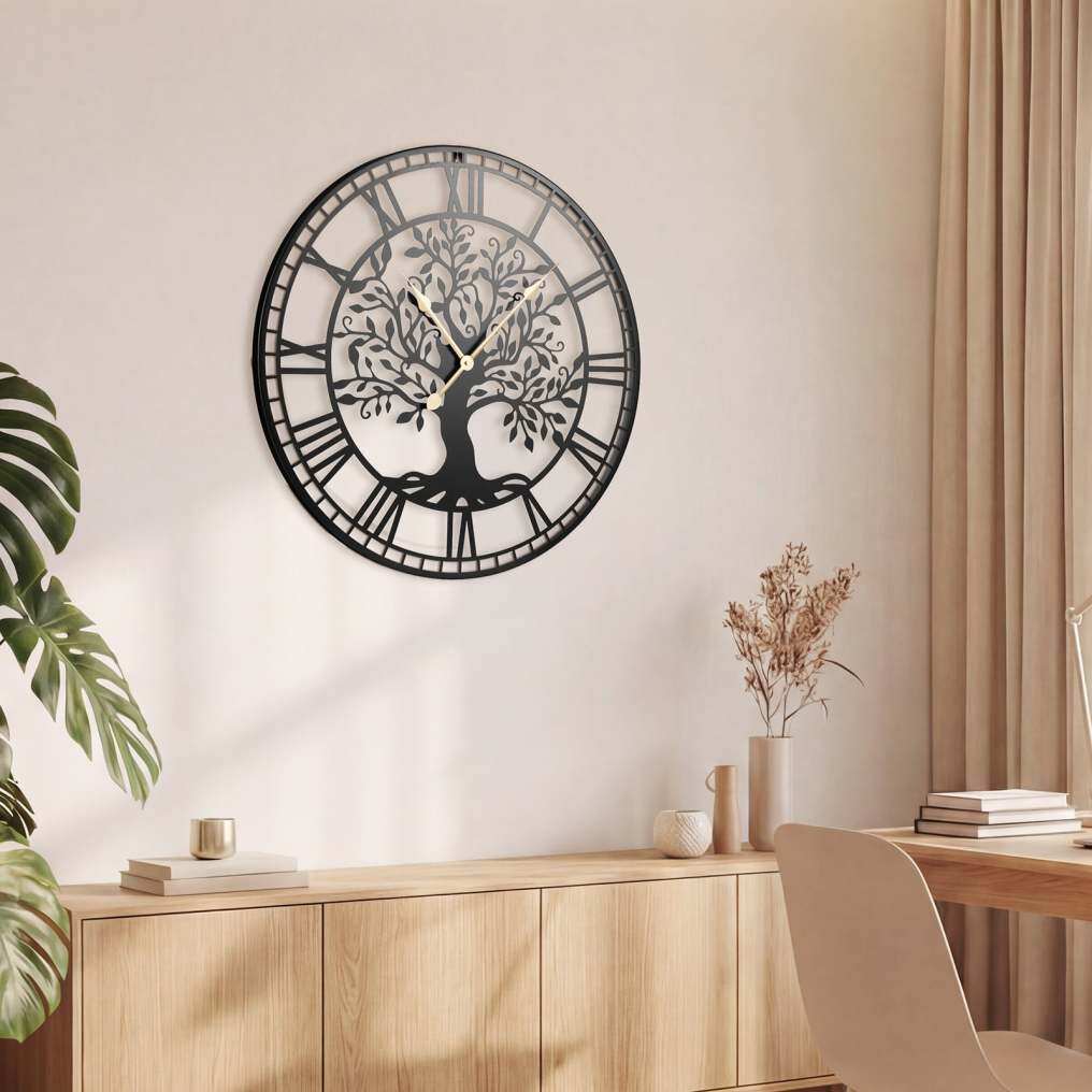 ● Tree of Life Artistic Design: Elevate your home’s ambiance with this decorative wall clock featuring a beautifully crafted tree of life motif encased in a sleek metal frame. It inspires harmony and a sense of renewal in your space.