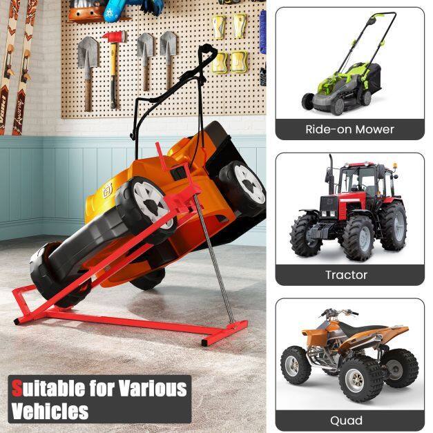 ● Space-saving Design: Easily collapsible, the riding mower lift minimizes space usage when not in action, freeing up valuable space in your garage or shed and bringing orderly environment. Furthermore, it simplifies storage and transport and is perfect for quick setups.
