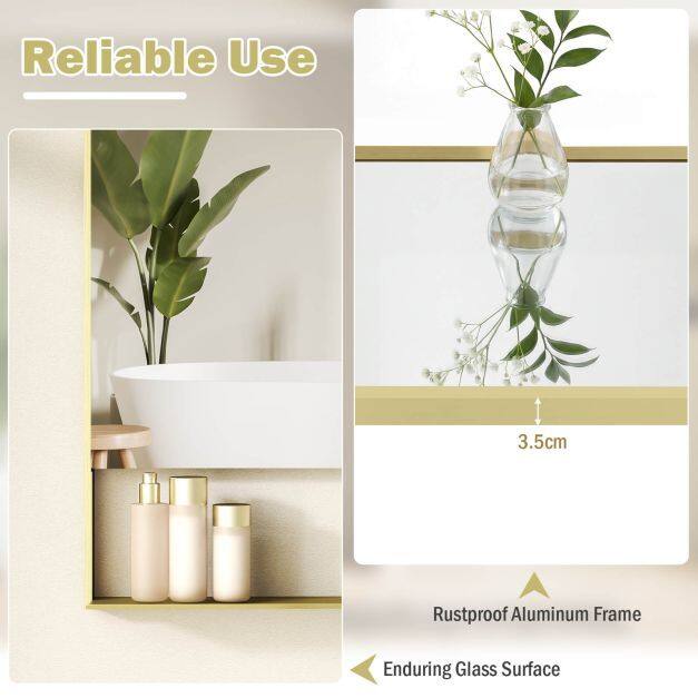 Safe & Reliable Construction: Constructed with a thick rustproof aluminum frame, this wall-mounted mirror offers waterproof protection and features an enduring glass surface that withstands the rigors of daily use.