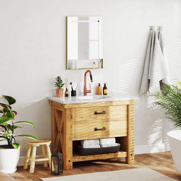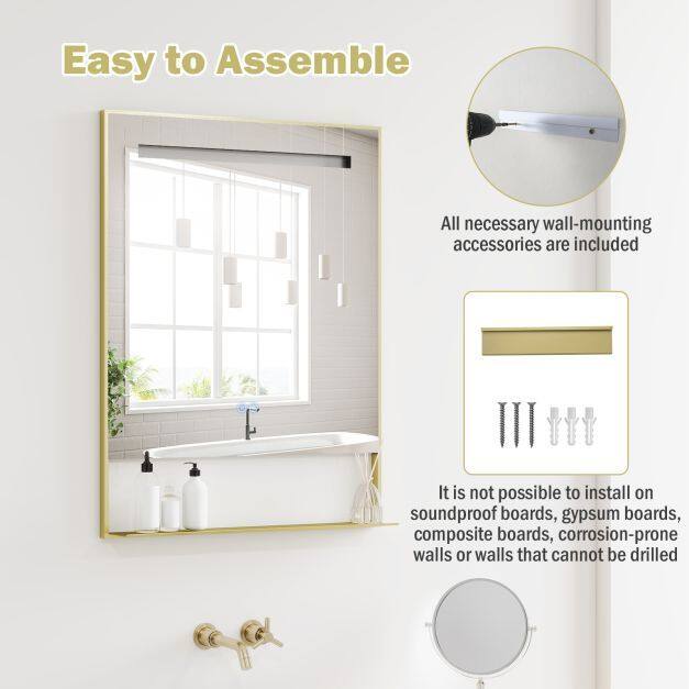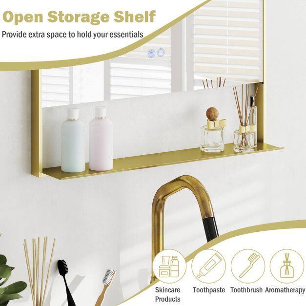 Thoughtful Open Storage Shelf: Featuring an open storage shelf, this rectangular mirror provides extra space to conveniently hold your essentials such as skincare products, toothpaste, toothbrushes and aromatherapy items, keeping your bathroom clutter-free and organized.
