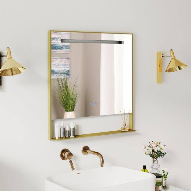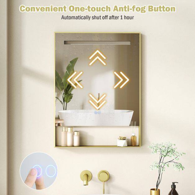 This bathroom mirror features a convenient one-touch anti-fog function that automatically shuts off after one hour, keeping your reflection crystal clear. Meanwhile, it offers 3 adjustable LED color temperatures, allowing you to customize lighting with stepless brightness control. There is also an open storage shelf to hold your daily essentials for your convenience. Built with a rustproof aluminum frame, this mirror is designed to last and withstand everyday use. Installation is easy with included mounting brackets and expansion screws, saving space and securing the mirror firmly to your wall. Its minimalist style makes it a perfect addition to bathrooms, hotels, barber shops and dressing rooms, combining both elegance and practical functionality.