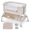 Featuring adjustable heights, this crib can be securely attached to the parent's bed. The tilt helps reduce reflux problems, while the storage basket keeps accessories within easy reach. With 4 lockable wheels and an included travel bag, this portable crib offers comfort and convenience, ensuring your baby a familiar sleep environment wherever you are.