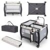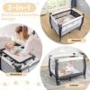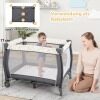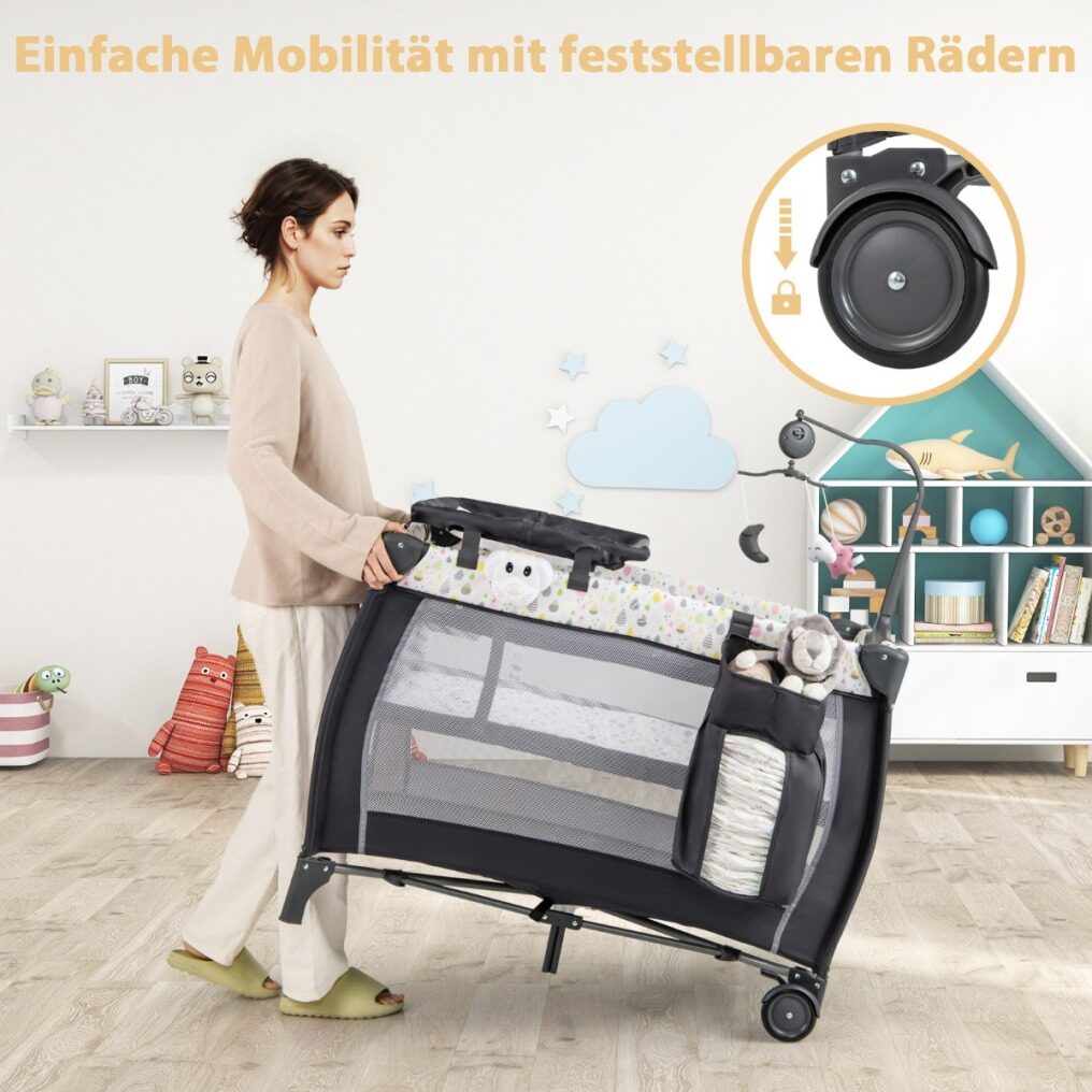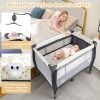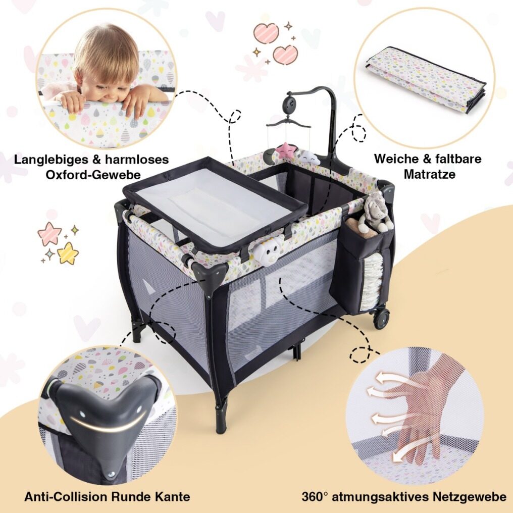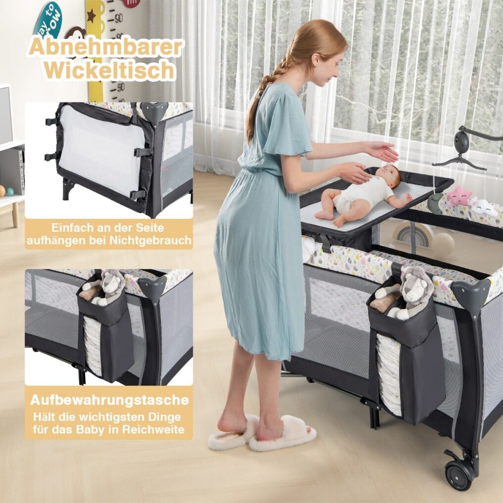 Meet all your needs with this multifunctional travel bed for babies! This multifunctional baby bed combines a baby cradle, changing table and playpen in one and is suitable for infants to toddlers. The round anti-collision edges protect children from injury and the 7-point support structure ensures high stability. The changing table is convenient for changing diapers, dressing, baby touching and massaging. And the storage bag can be used to store some essential baby supplies. This portable baby bed with mattress can be easily folded and unfolded without any tools.
