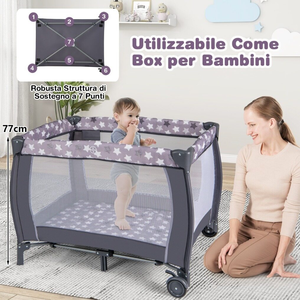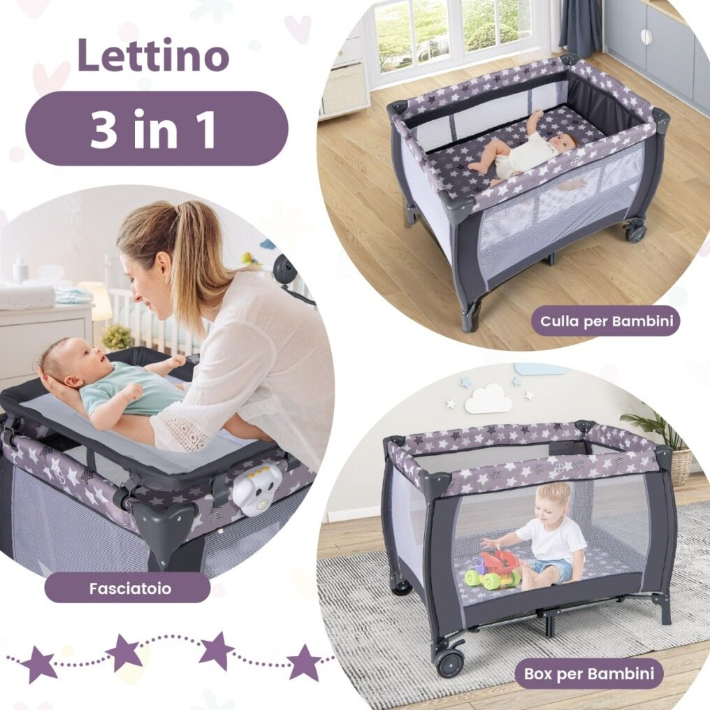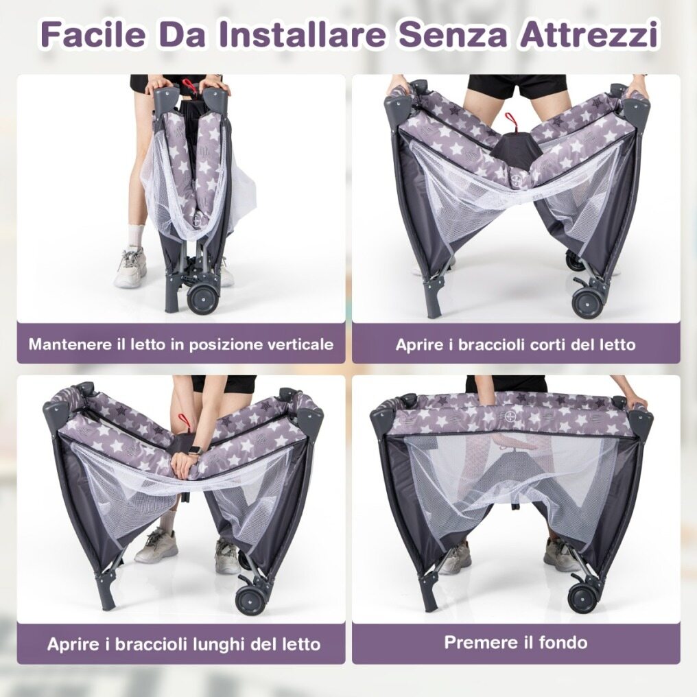 Easy to set up and fold: The 3-in-1 travel cot is easy to set up and requires no tools. Here's how to set it up: 1. Pull out the cot, 2. Unfold the 4 sides, 3. Press down on the center of the floor, 4. Insert the mattress. It also comes with a carry bag to make every trip easier.