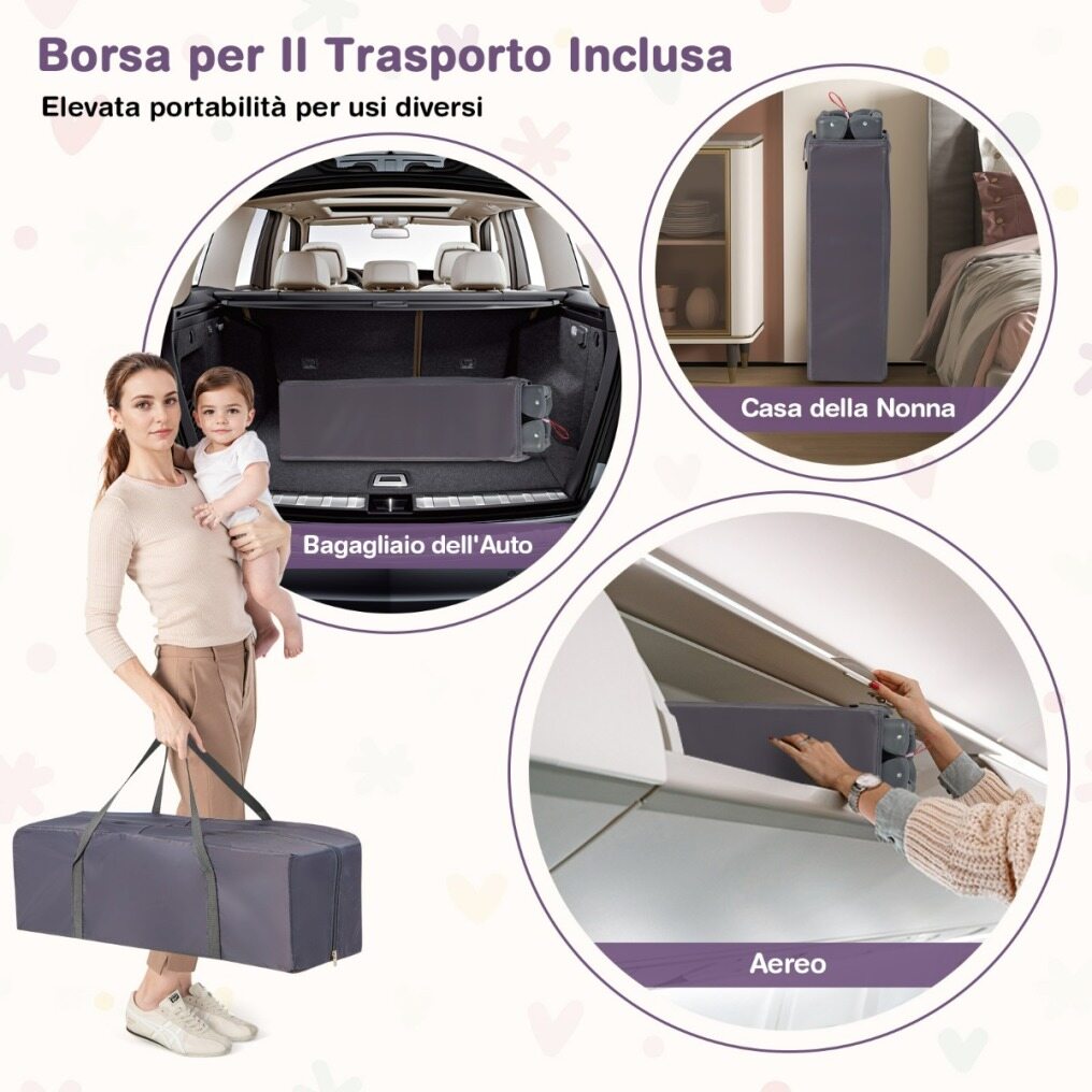 Baby-Friendly Details: Featuring a soft, foldable mattress, the foldable travel crib allows babies to nap comfortably. Velcro fasteners help secure the mattress. Additionally, the diaper bag on the side holds baby necessities for easy access.