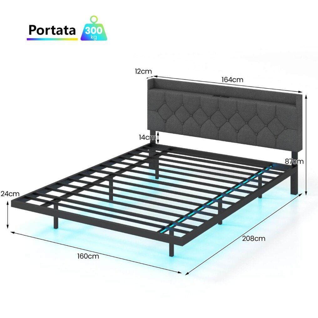 【Built-in Power Outlets】Enjoy the convenience of charging with the Full/Queen size bed's built-in power outlets, including 2 AC outlets, a USB port and a Type-C port. Keep your devices powered and within reach without the clutter of extra cords.