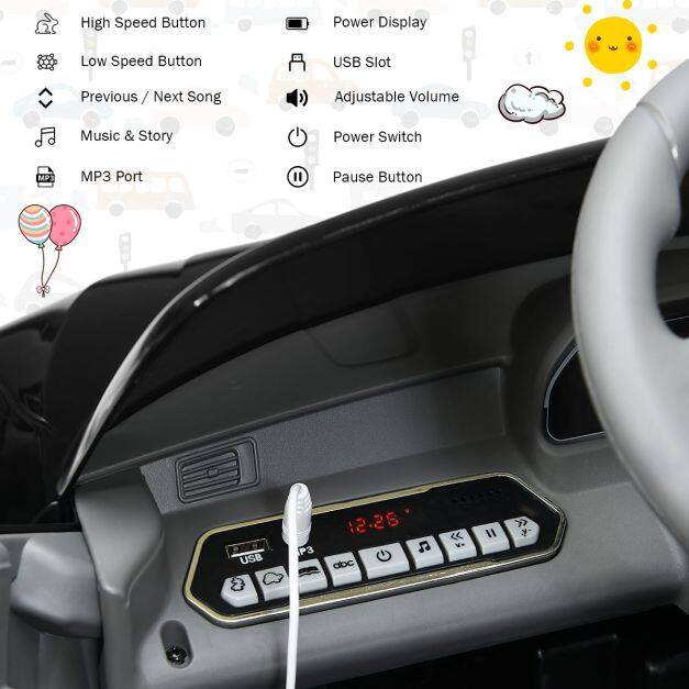Cheer up Your Kids with Music and Story: Your kids will never get bored with driving since there are several built-in stories and music. Dynamic sound with adjustable volume shall cheer up your kids. More, its USB slot and MP3 port make much more entertainment resources available. By the way, power display reminds you to get it charged in time, for long-lasting continuous driving time.