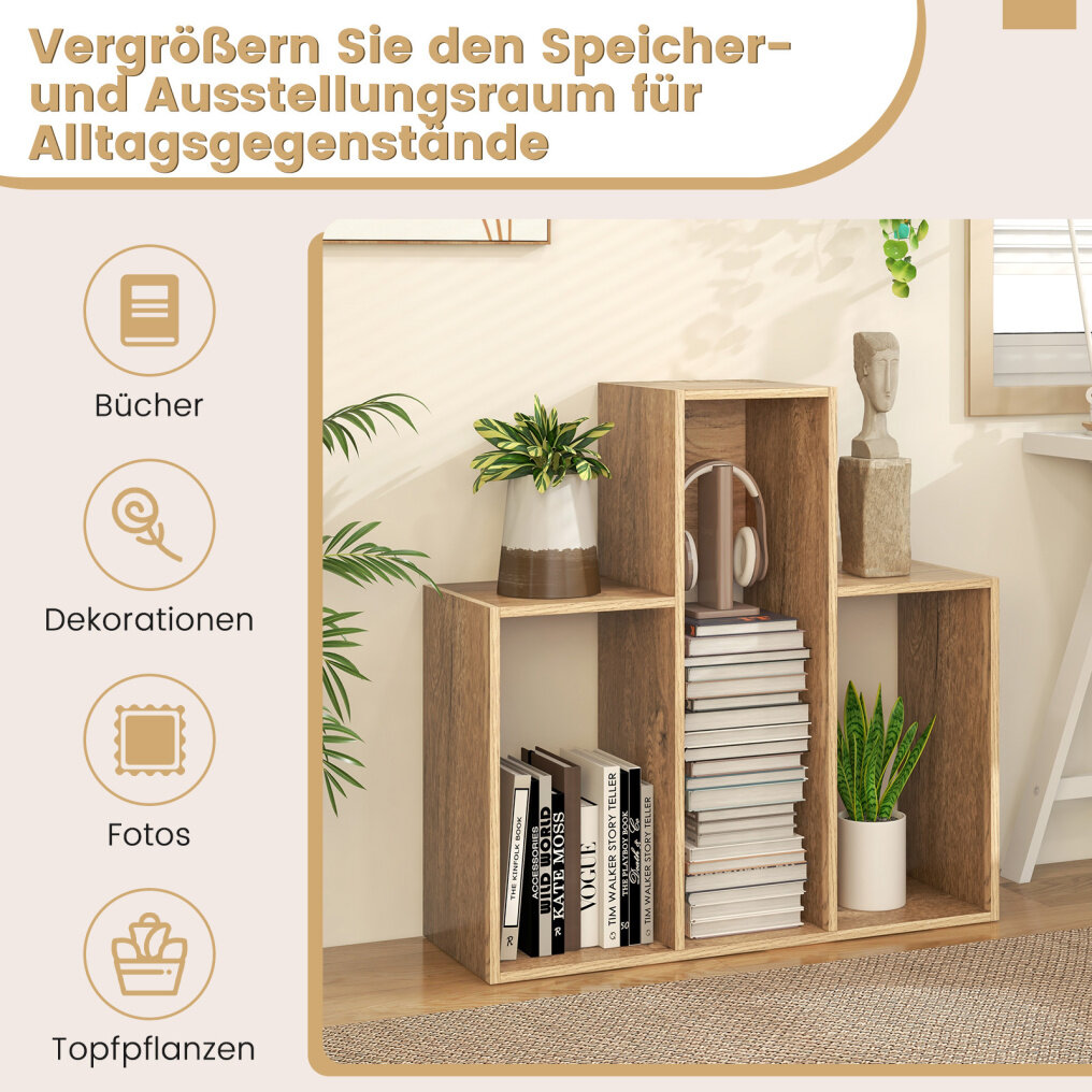 Open Storage : Three spacious shelves offer ample storage and display space for books, potted plants, photos, and decorations. The open bookshelf keeps your valuable items attractive and easily accessible.