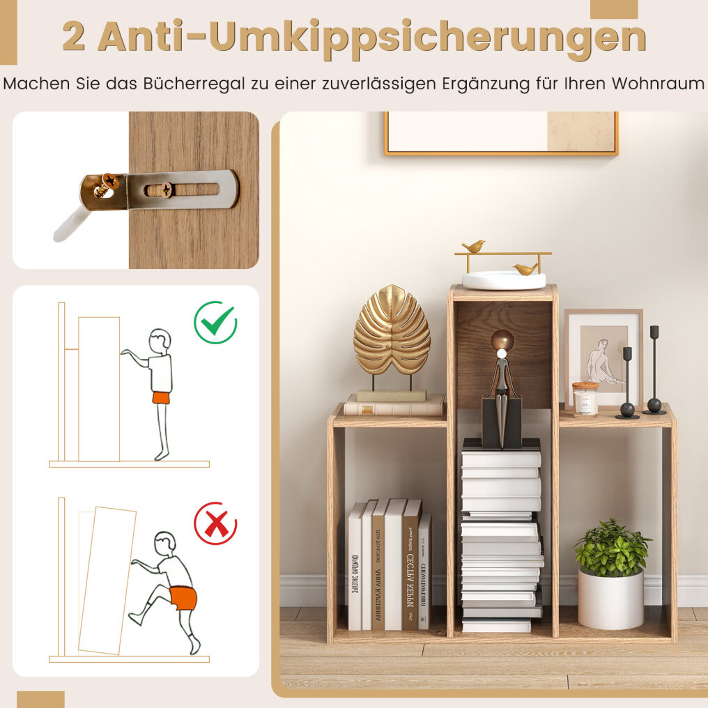 Improved stability: Two anti-tip devices ensure stability and prevent accidental tipping, making the bookcase safe for families with children or pets. This sturdy and reliable bookcase keeps all your items safely stored.