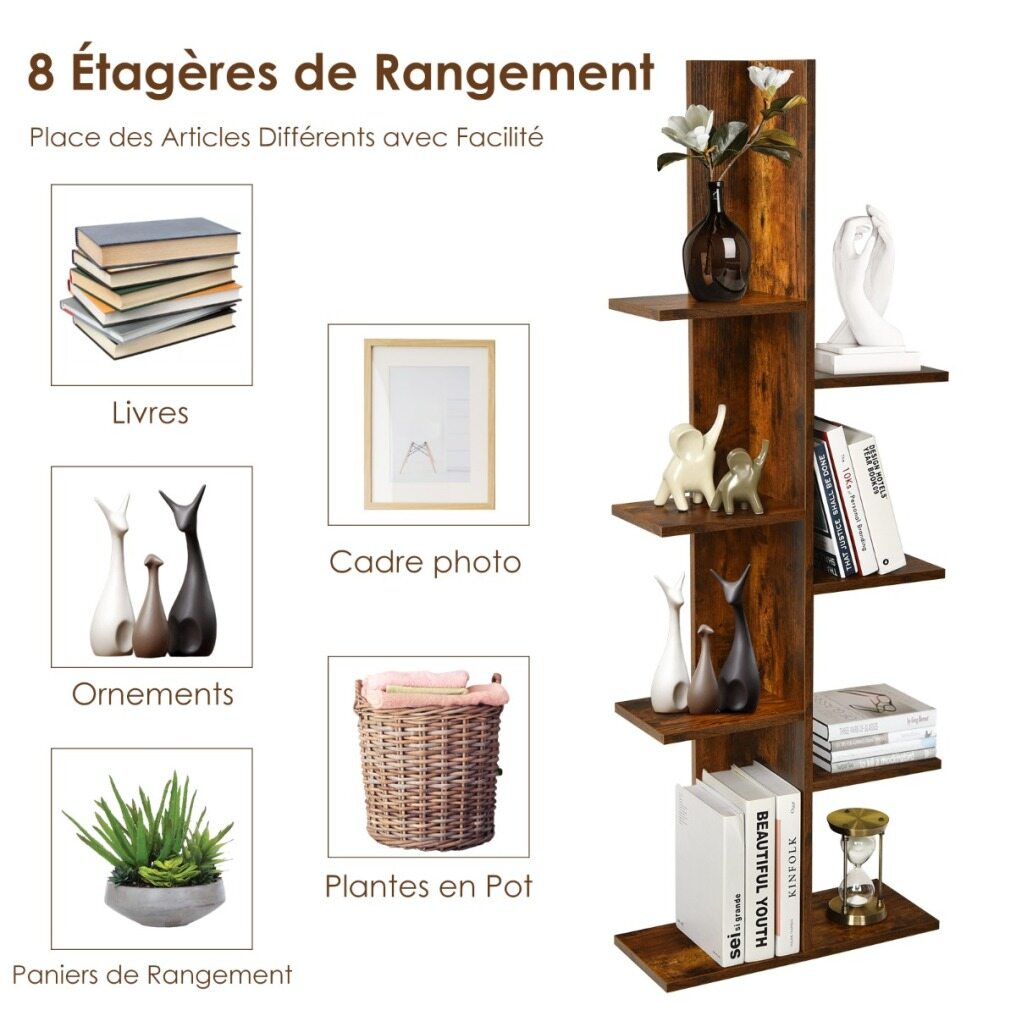 Our bookcase is your great option which is a combination of decoration and function. The thick board makes the shelf very stable and suitable for long-term use. 8-tier shelves provide ample space for storing and displaying collections, books, photos, etc. The non-slip foot pads and anti-tilt device increase the overall stability of the bookcase. It can be used not only as a bookcase but also as a display shelf in the living room and as a plant stand on the balcony. The simple and modern design makes this bookcase suitable for any room style and adds a highlight to your home.