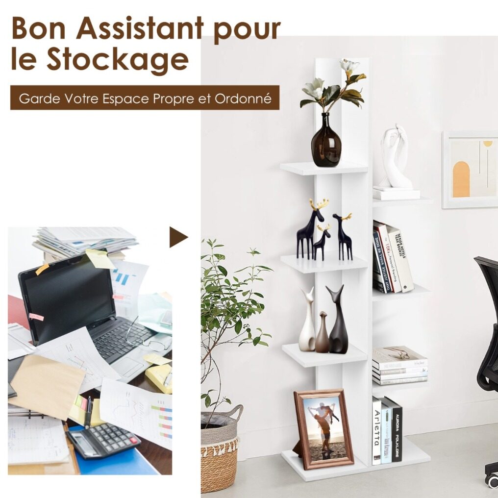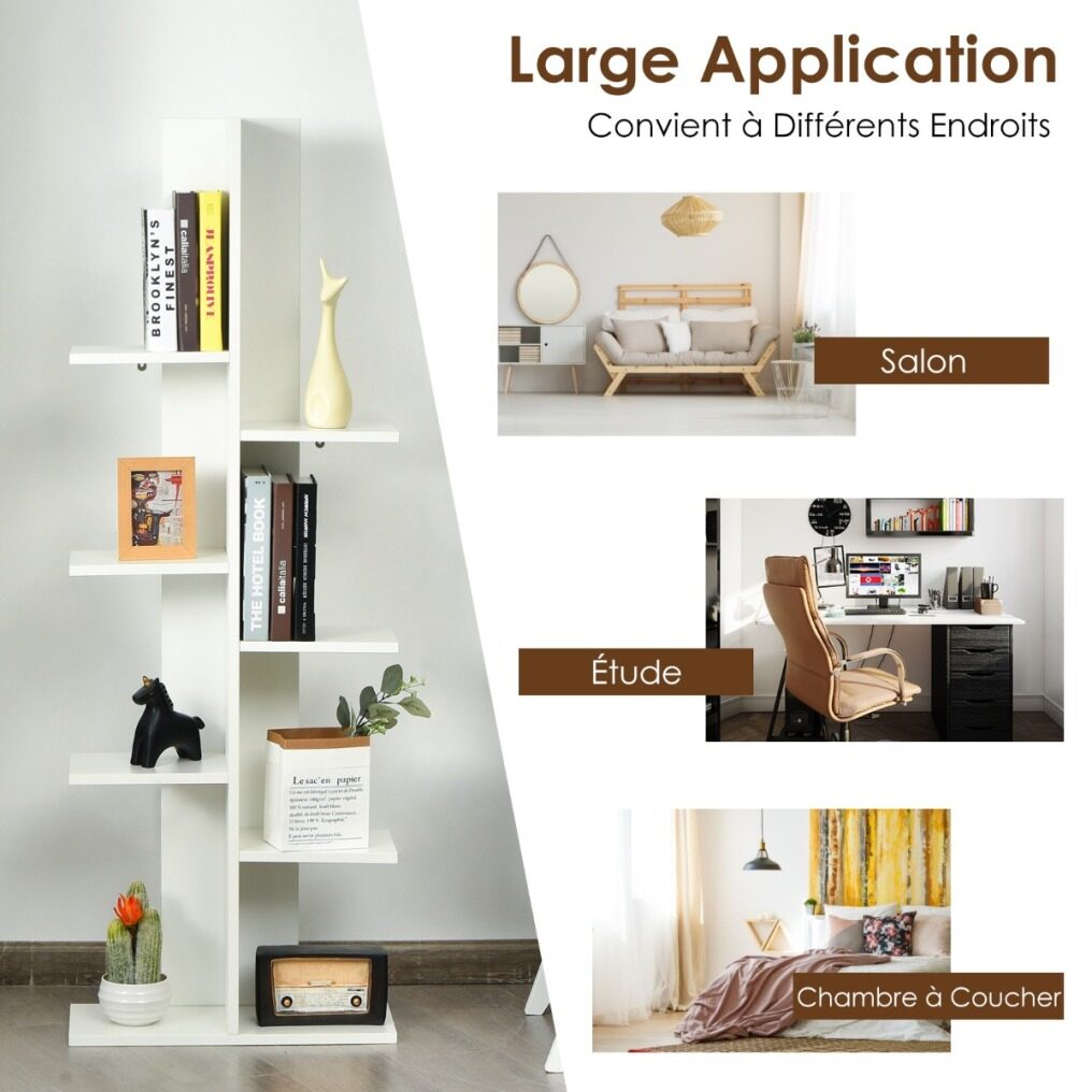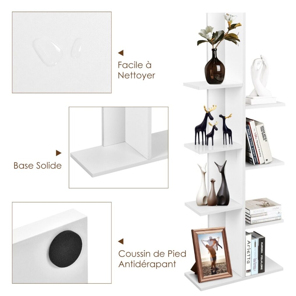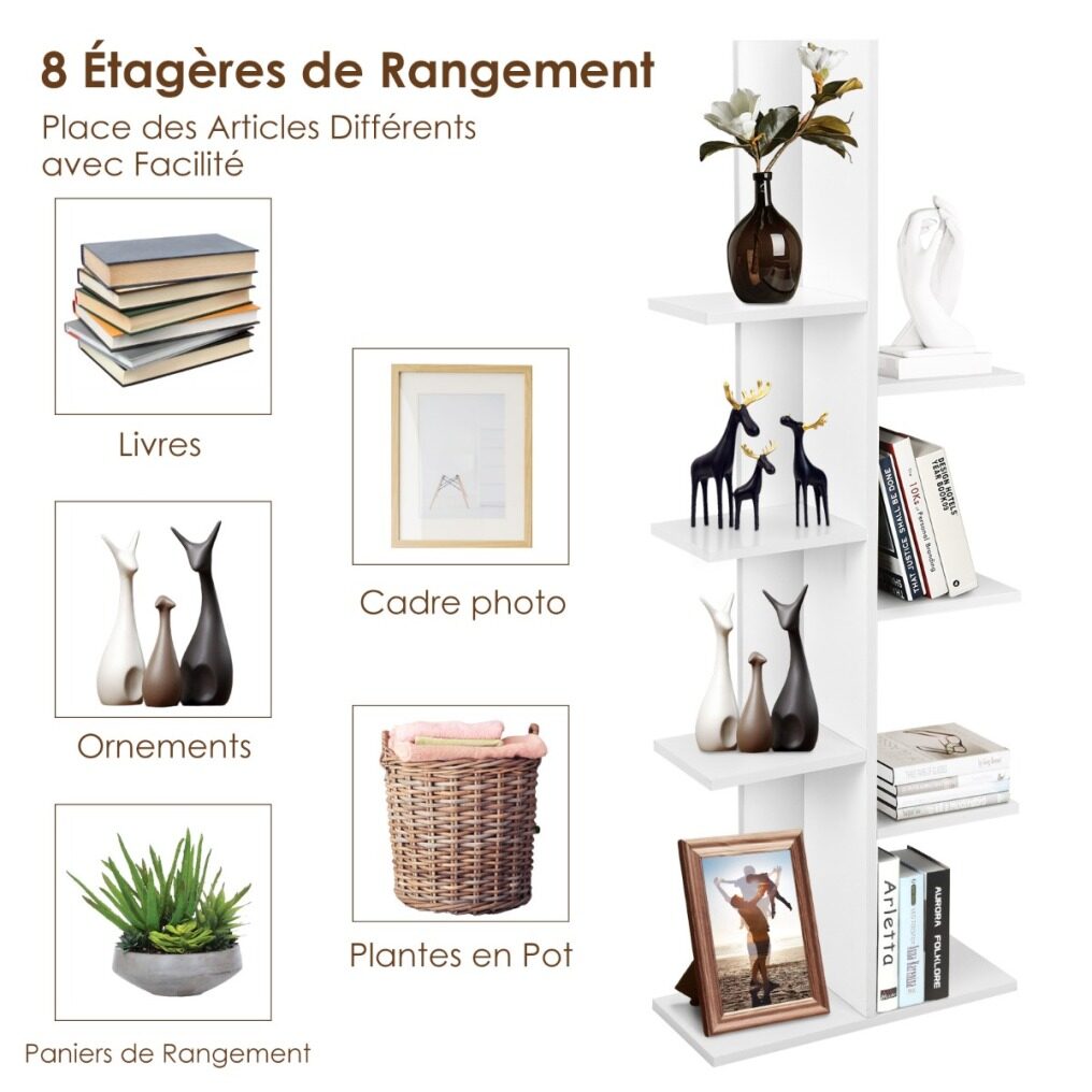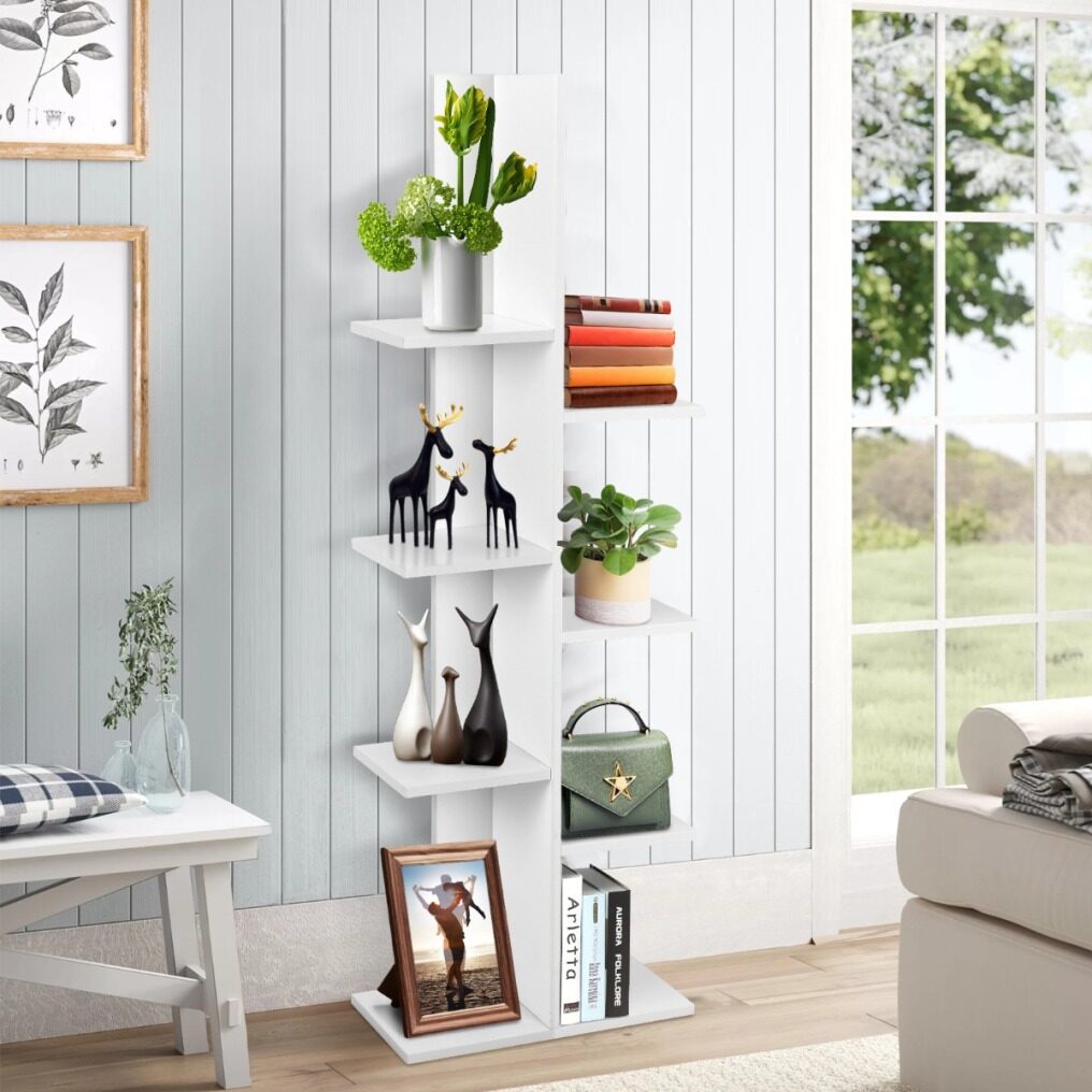 8 Shelves: With 8 tiers, this bookshelf provides ample storage space for your daily supplies and display decorations while making full use of vertical space. It also features a multi-layer design with sufficient height between each tier, which provides much convenience for arranging and taking out items.