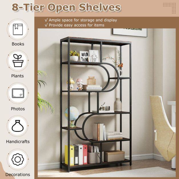 【Open Storage and Display Space】Featuring 8 spacious shelves, this bookcase offers plenty of room to display books, plants, photos, crafts, and ornaments. The open design allows for easy access, ideal for organizing your belongings in style.