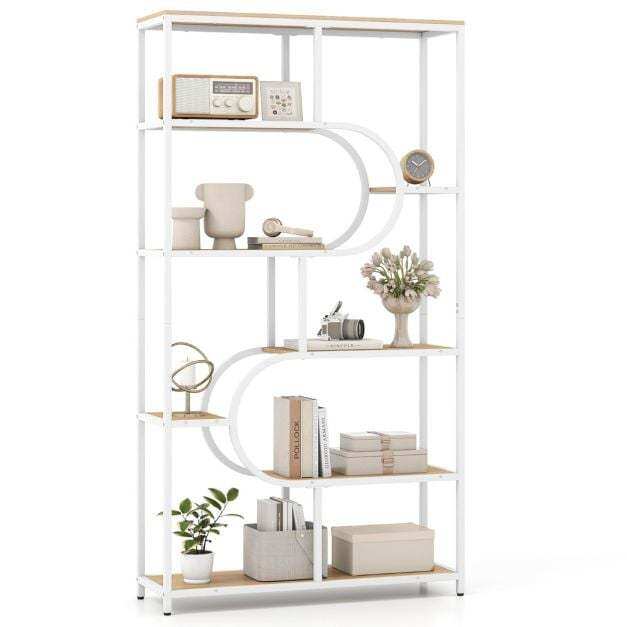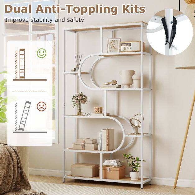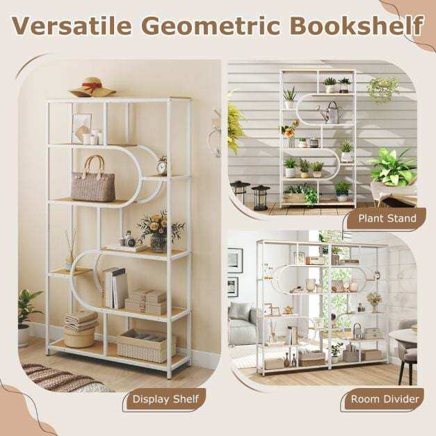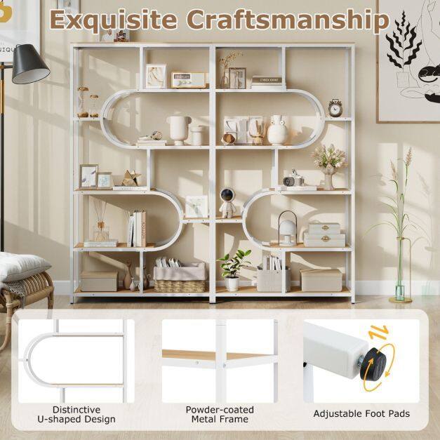 【Sophisticated Geometric Style】With its eye-catching U-shaped structure, this 8-tier bookcase offers a bold alternative to traditional bookcases. Its unique shape enhances the elegance of any room, combining functionality and artistic appeal with your décor.