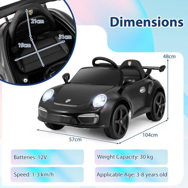 Perfect Gift for Kids: Boasting authentic emblems and details, this luxury ride replicates the glamour of a real Porsche, making it a dream come true for young enthusiasts aged 3-8. It is an ideal gift choice for birthdays or holidays, providing hours of fun for boys and girls.