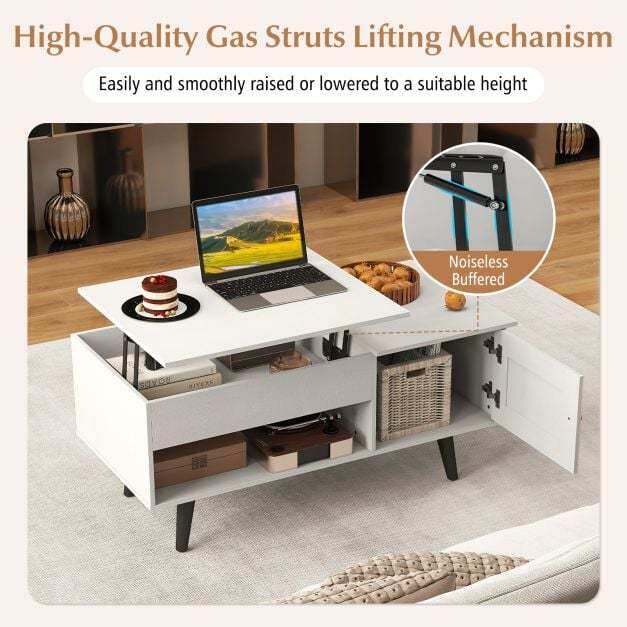 Convenient Lift-Top Design: The coffee table is equipped with a gas struts lifting mechanism, makes it easy to lift and lower of the tabletop from 46cm to 60cm. This considerate design turns your coffee table into a makeshift workstation.